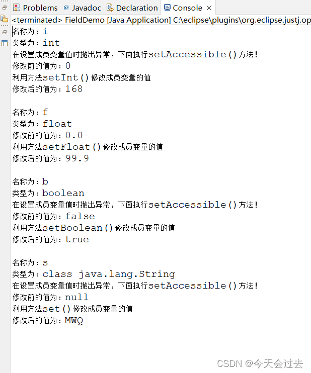 System.out.println(" " + fa.type()); // 获得字段的类型