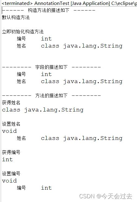 System.out.println("-------- 字段的描述如下 --------");