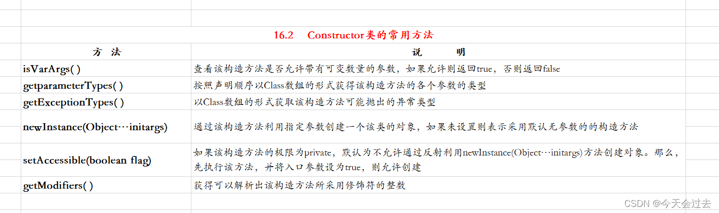 Constructor 类中提供的常用方法如表16.2所示。