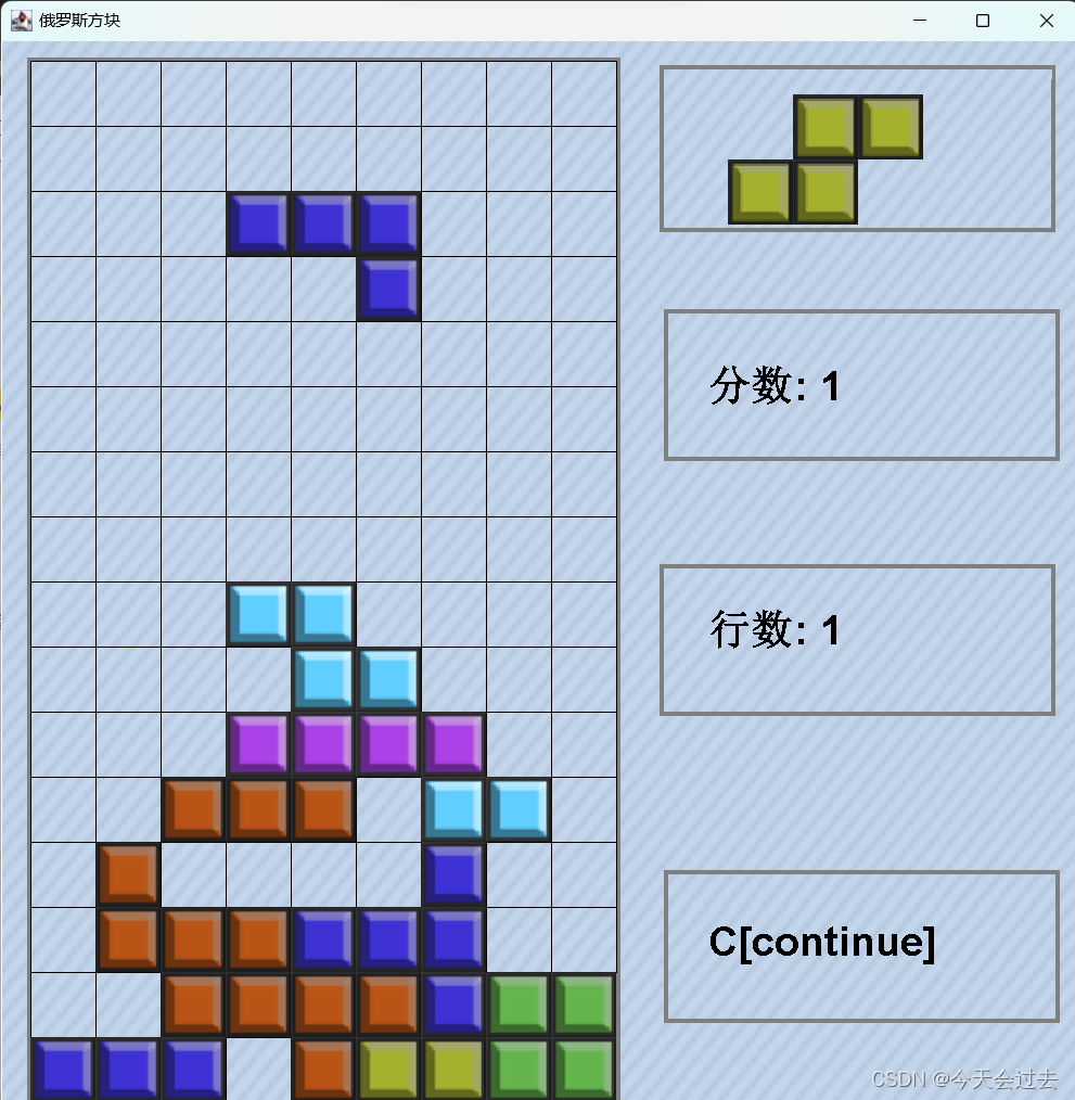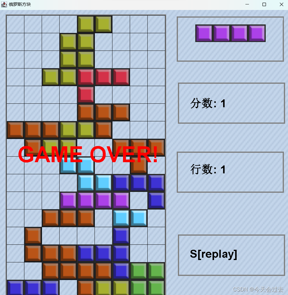 方块占满,游戏结束,此时可以按下S键重新开始游戏。
