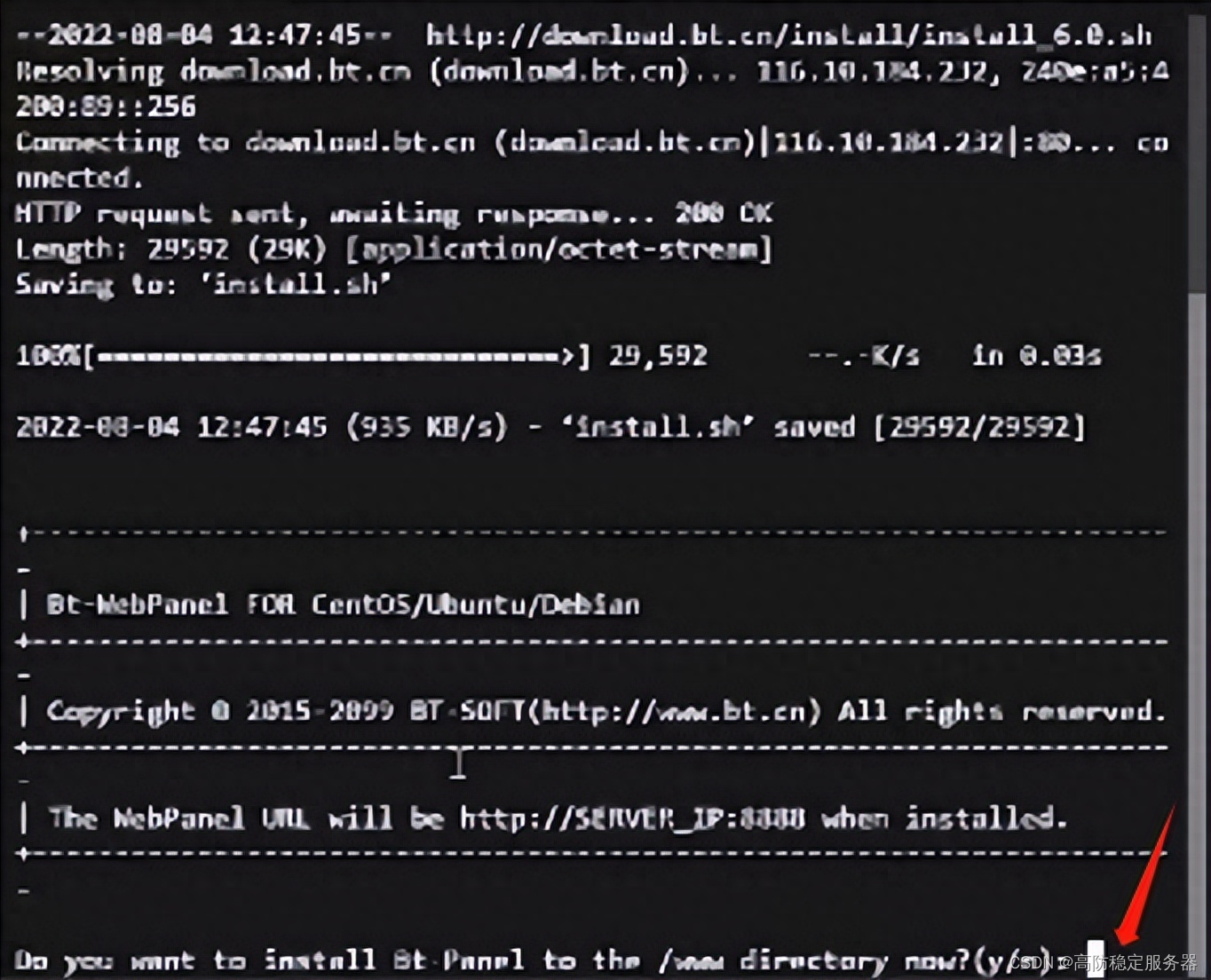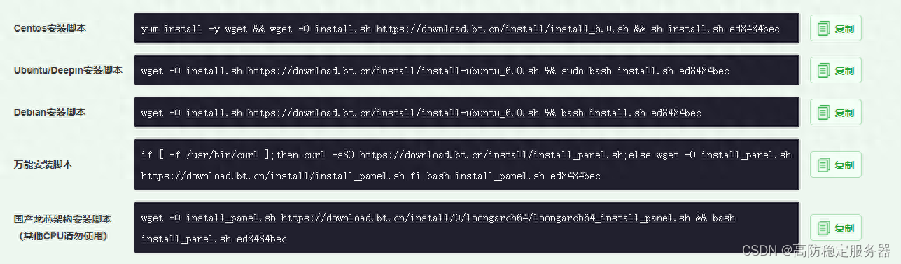 1.首先我们连接上自己的服务器,然后去宝塔官网复制安装脚本,这里需要注意找到与你服务器相对应的脚本。