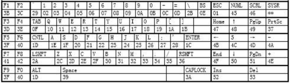 下图为AT键盘的扫描码对照表