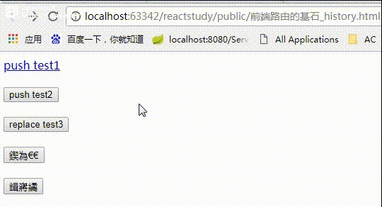 下面一个例子,我们演示React是如何做到修改地址栏地址而不引起页面刷新的,进而我们可以猜测到React路由的实现原理。代码中我们使用了 history.js 来操作浏览器的history,这样可以屏蔽原生history API的复杂性