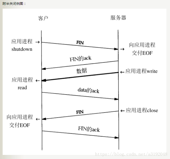由于TCP连接是全双工的,因此每个方向都必须单独进行关闭。这原则是当一方完成它的数据发送任务后就能发送一个FIN来终止这个方向的连接。收到一个 FIN只意味着这一方向上没有数据流动,一个TCP连接在收到一个FIN后仍能发送数据。首先进行关闭的一方将执行主动关闭,而另一方执行被动关闭。