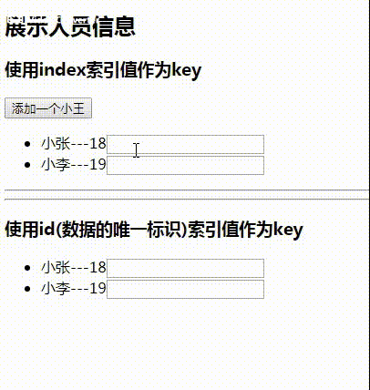 <h3>使用id(数据的唯一标识)索引值作为key</h3>