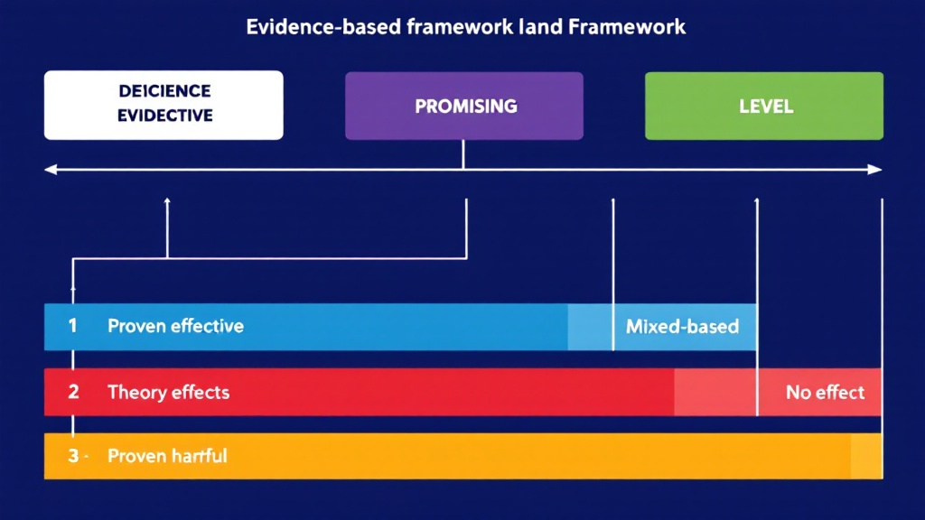 A:MMB的六级框架通过严格的评估标准对各种服务或实践进行分级。"已证明有效"和"有前景的"需要通过严格的实验或准实验设计验证;"基于理论的"虽然有逻辑模型但缺乏证据支持;"混合效果"表示研究结果矛盾;"无效果"和"已证明有害"则明确显示负面结果。这个分级系统帮助IT管理者更好地评估技术方案的可靠性。