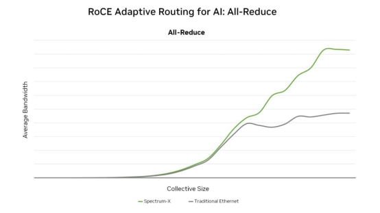 与传统以太网相比,Spectrum-X可提供卓越的NCCL(NVIDIA集合通信库)。