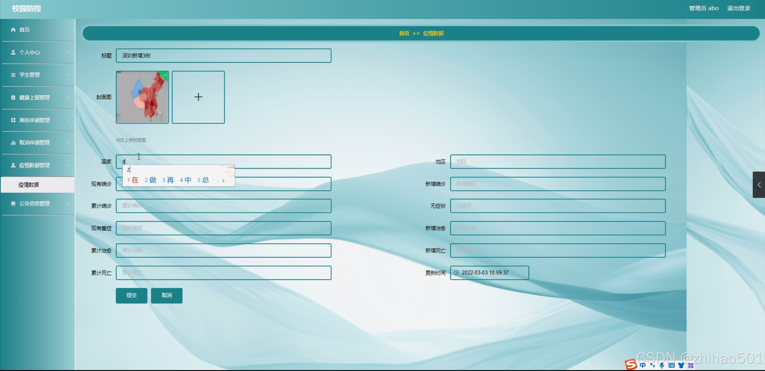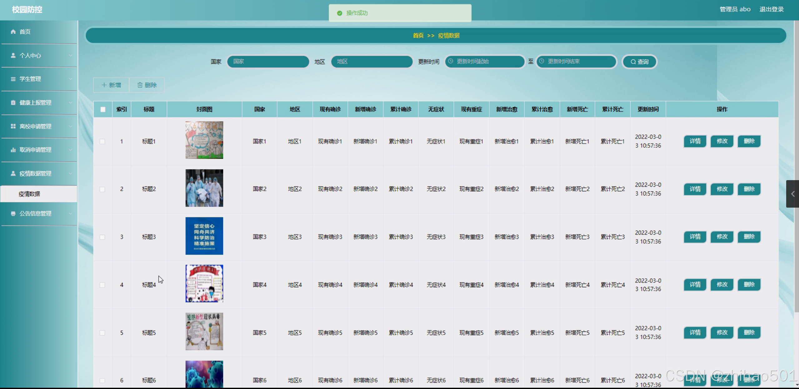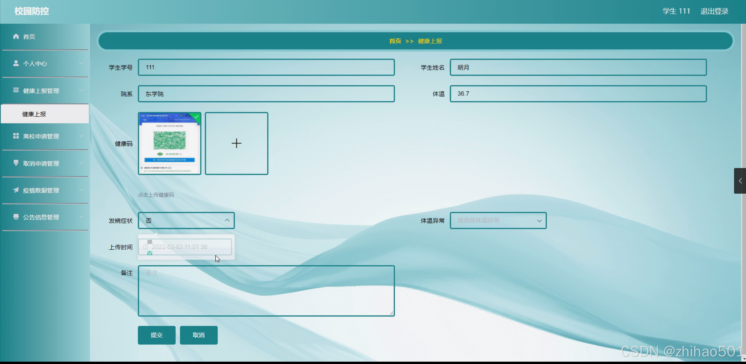 本研究将围绕校园防控系统的功能展开,具体包括:学生信息管理模块,实现学生基本信息的录入、更新与查询;健康上报模块,允许学生每日上报健康状况,系统自动汇总分析;离校申请与审批模块,学生提交离校申请,教师或管理人员进行审批;公告信息发布模块,实时发布疫情防控政策、通知等信息;取消申请模块,允许学生取消已提交的离校申请;疫情数据展示模块,展示校园内疫情数据,如确诊人数、隔离人数等。通过这些功能模块的设计与优化,构建一个高效、实用的校园防控系统。