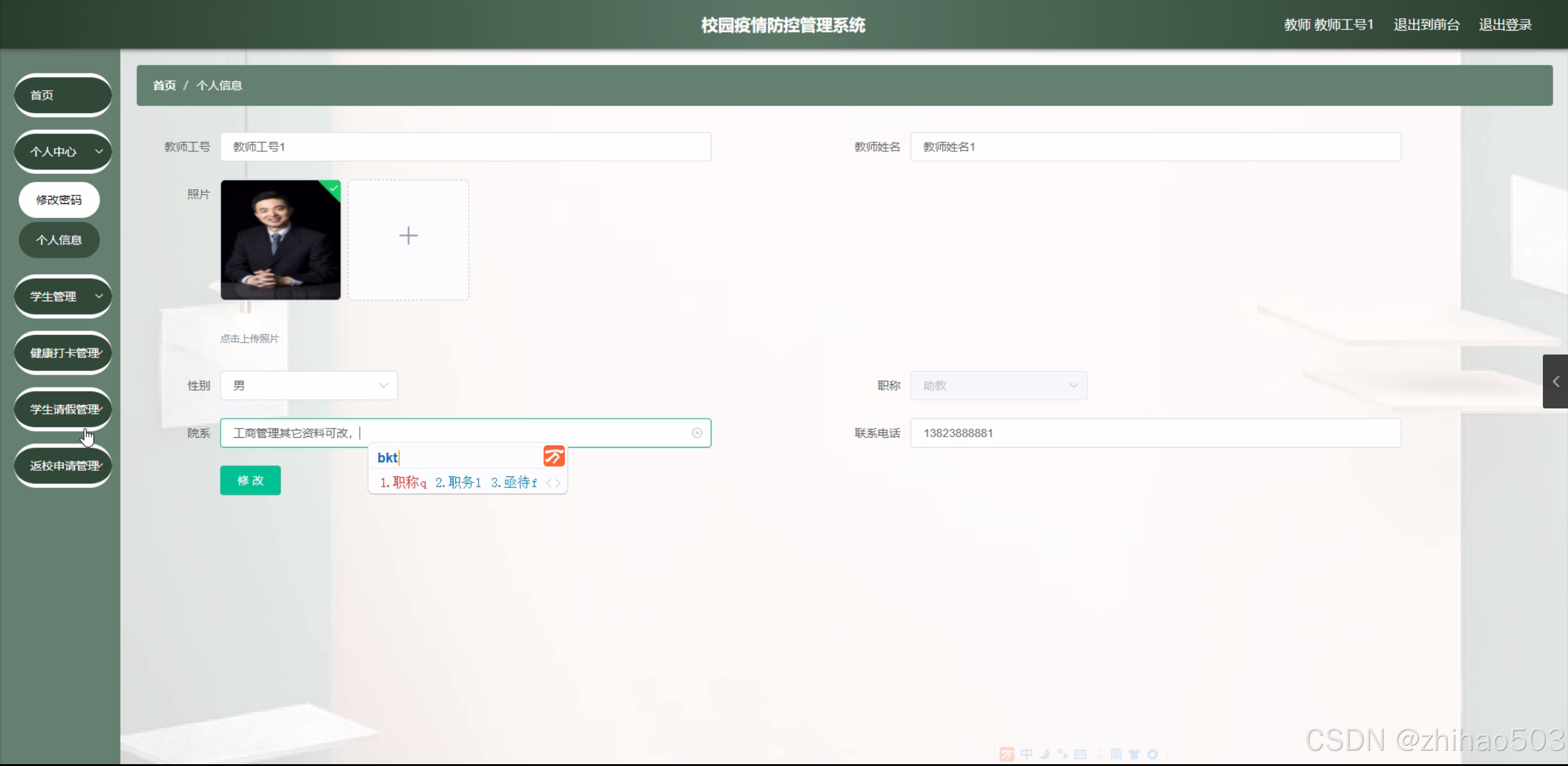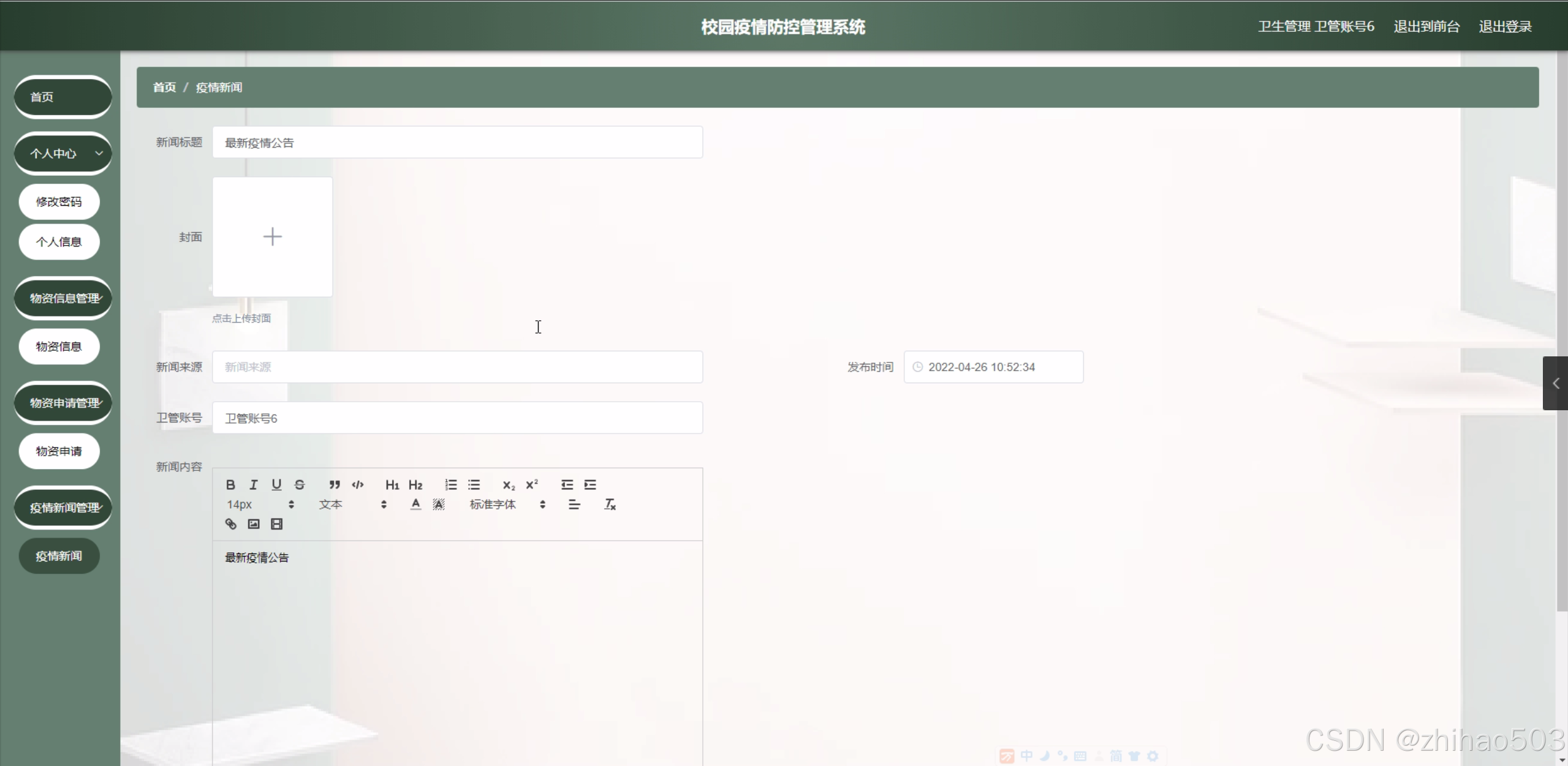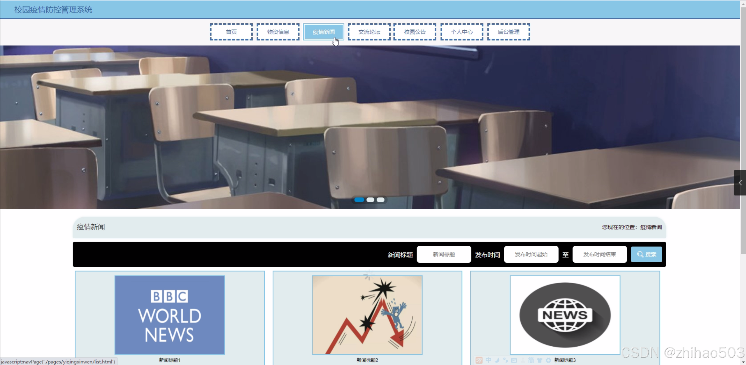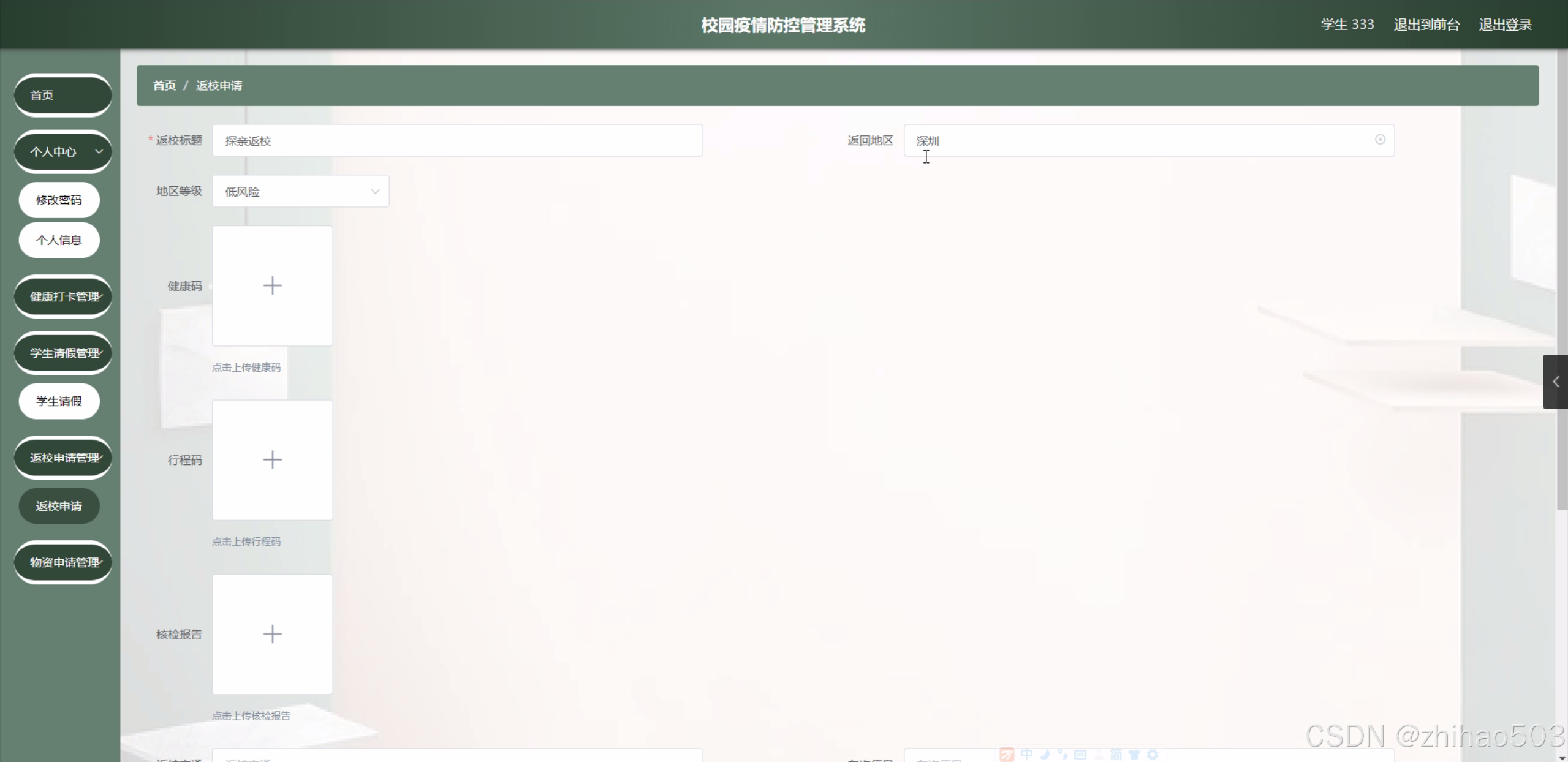 在当前全球疫情持续蔓延的背景下,校园作为人员密集场所,其疫情防控工作显得尤为重要。关于校园疫情防控的研究,现有文献主要集中在疫情传播模型、防控策略及政策分析等方面,而专门针对校园这一特定环境下的疫情防控管理系统的研究相对较少。现有的校园管理系统大多侧重于教学、行政等方面的管理,对于疫情防控的专项管理功能尚不完善。因此,本选题将以校园疫情防控管理系统为研究情景,重点分析和研究如何通过信息化手段,构建一个集学生、教师、卫生管理等多方参与,涵盖健康打卡、请假申请、物资管理、疫情新闻发布等功能于一体的综合管理系统,以期探寻提高校园疫情防控效率与精准度的机制,提出针对性的对策建议,为后续更加深入的研究提供基础。