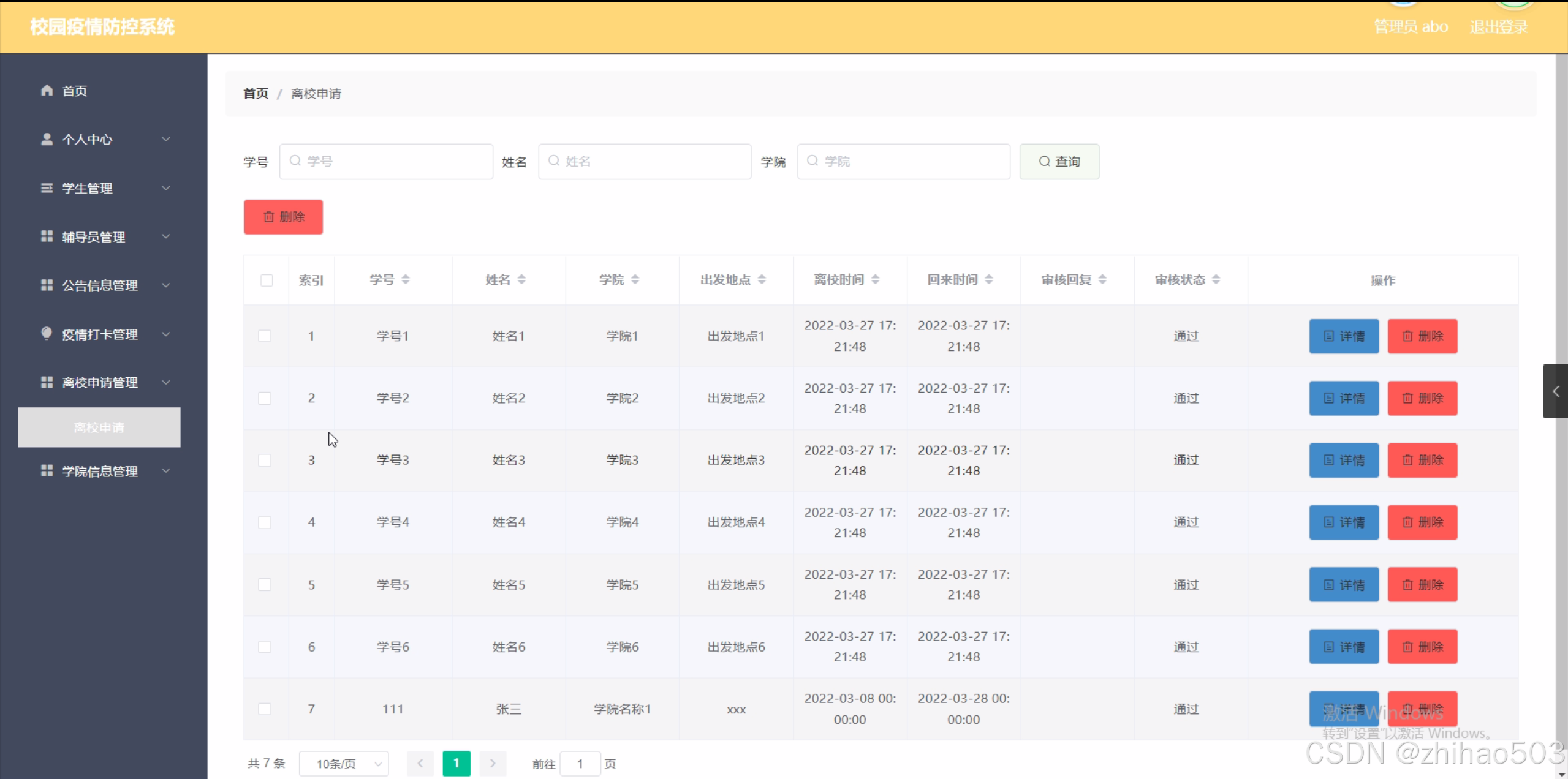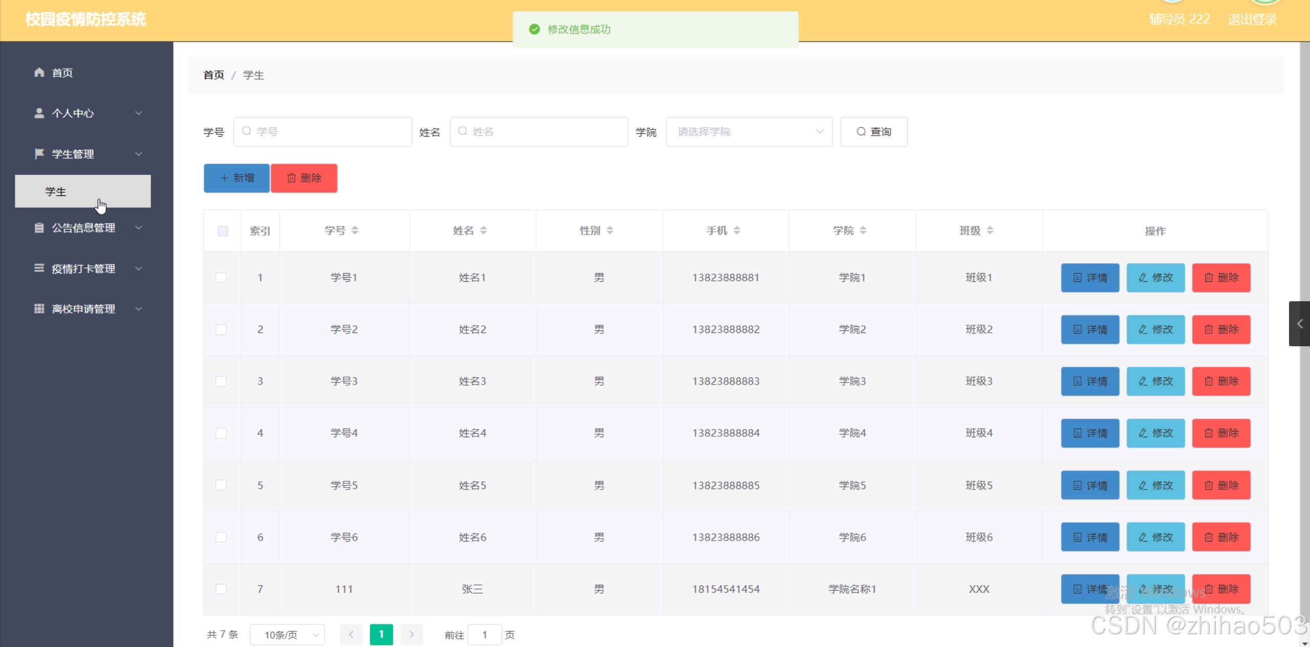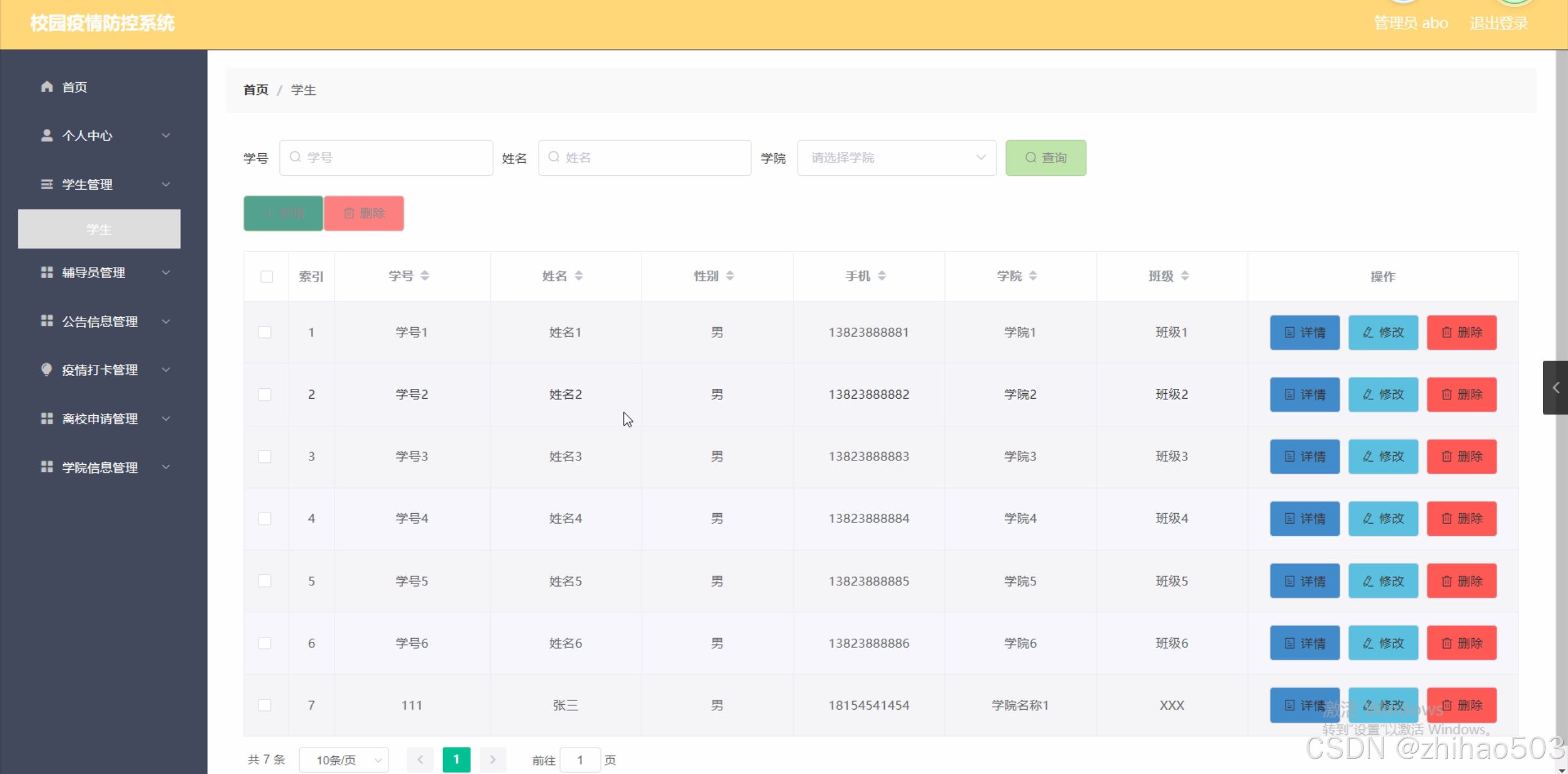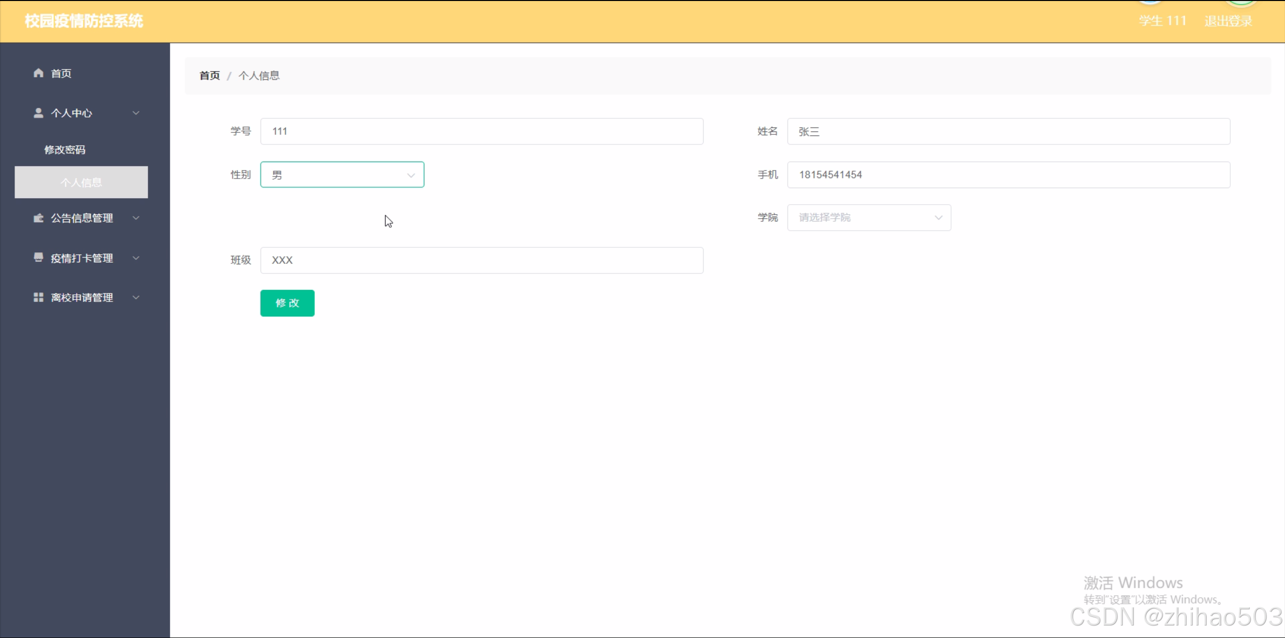 本研究将围绕校园疫情防控系统的功能展开,具体包括学生信息管理、辅导员管理、公告信息发布、疫情打卡记录、离校申请审批、学院信息管理等功能模块。通过深入分析这些功能模块的设计和实现,探讨其在校园疫情防控中的应用效果和存在问题,提出针对性的改进建议,以期构建一个更加完善、高效、便捷的校园疫情防控系统。