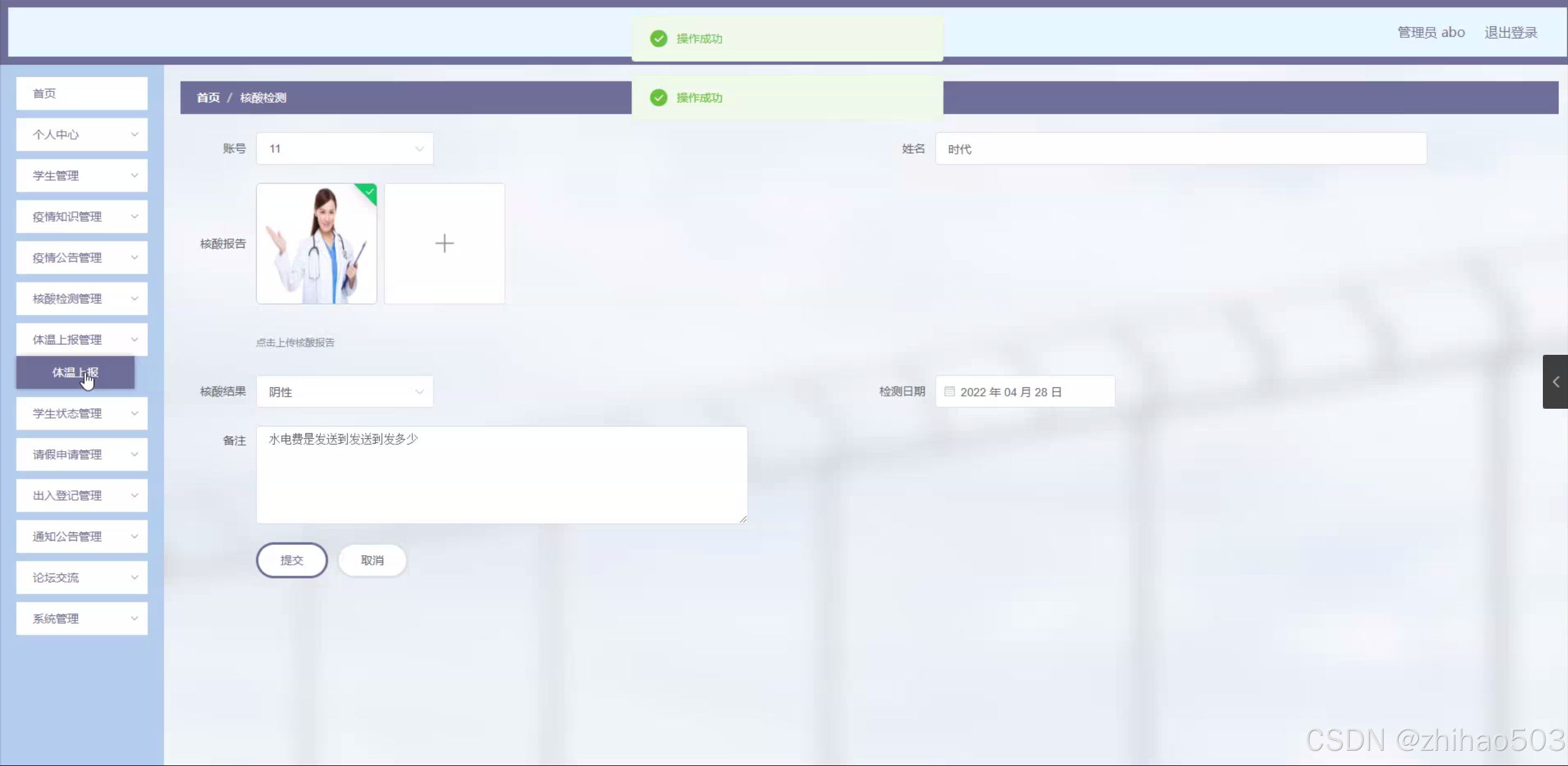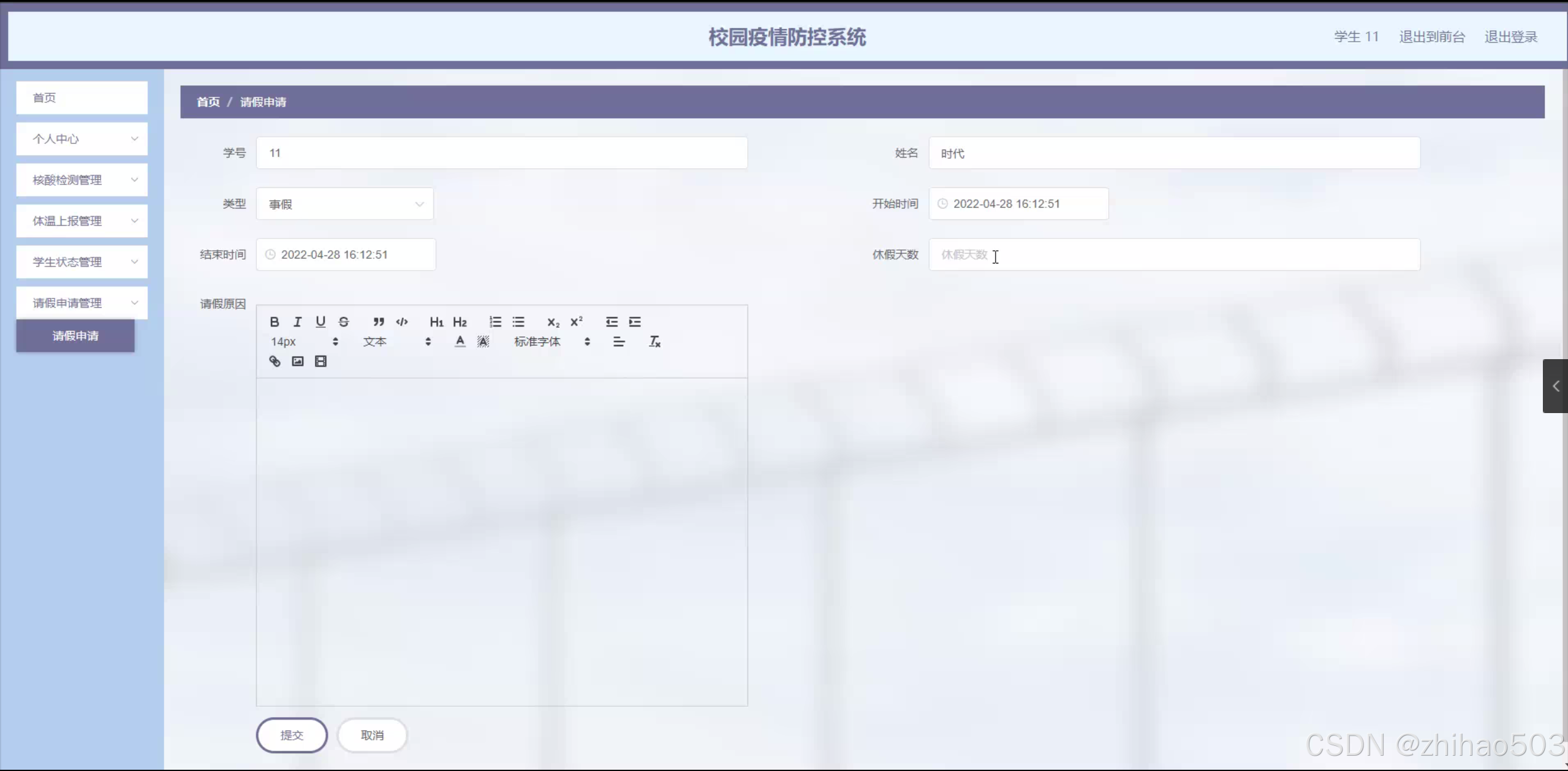 本研究将围绕校园疫情防控系统的核心功能展开,包括学生信息管理、疫情知识普及、疫情公告发布、核酸检测预约与结果查询、体温上报与监测、学生状态跟踪、请假申请与审批、出入登记管理、通知公告推送等。通过这些功能的实现,构建一个全面、高效、安全的校园疫情防控系统,为校园疫情防控提供有力支持。
