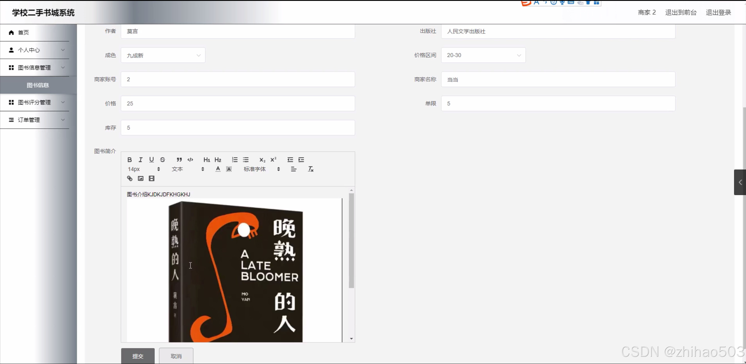 本研究将围绕学校二手书城系统的构建展开,具体研究内容包括:用户管理模块,实现用户的注册、登录、个人信息管理等功能;图书分类模块,对图书进行科学合理的分类,便于用户查找;图书信息管理模块,展示图书的详细信息,包括书名、作者、出版社、ISBN等;价格区间设置模块,允许用户根据价格筛选图书;图书评分模块,允许用户对图书进行打分和评价,为其他用户提供参考;卖家管理模块,实现卖家的注册、登录、图书上架等功能;在线咨询模块,为用户提供实时的在线咨询服务,解决用户在购书过程中的疑问。通过这些功能模块的实现,构建一个功能完善、操作便捷的学校二手书城系统。