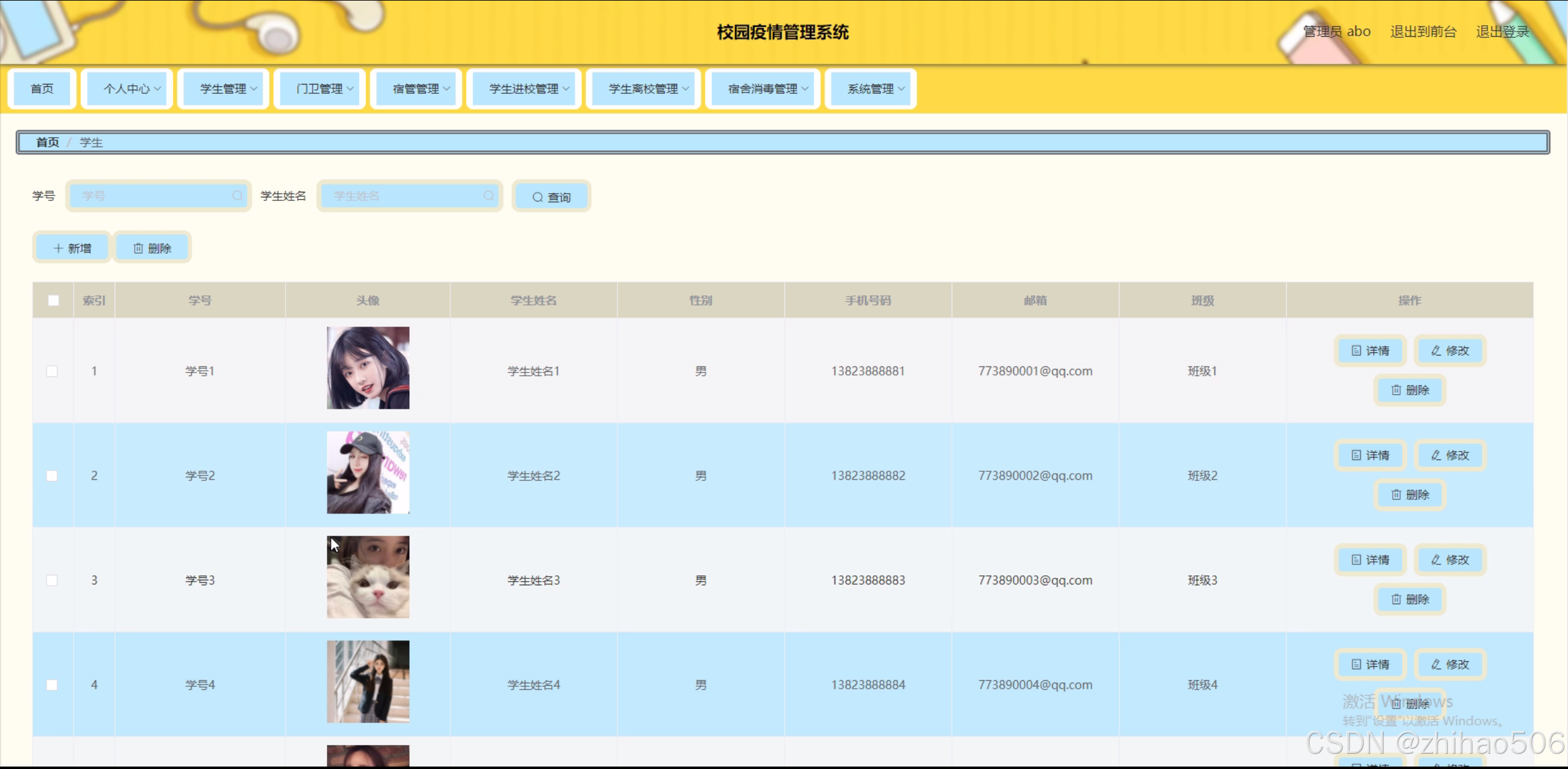校园疫情管理是当前全球公共卫生领域的重要议题,尤其在新冠疫情的背景下,如何有效管理校园疫情、保障师生健康成为各教育机构亟需解决的问题。现有研究主要以宏观层面的疫情防控策略为主,如国家层面的防疫政策、疫苗接种普及等,而专门针对校园疫情管理的系统性和微观层面的研究较少。因此,本选题将以校园疫情管理系统为研究情景,重点分析和研究如何通过信息化手段,整合学生、门卫、宿管等多方资源,实现学生进校、离校、宿舍消毒、健康上报等功能的智能化管理,以期探寻校园疫情管理的有效机制,提出对策建议,为后续更加深入的研究提供基础。