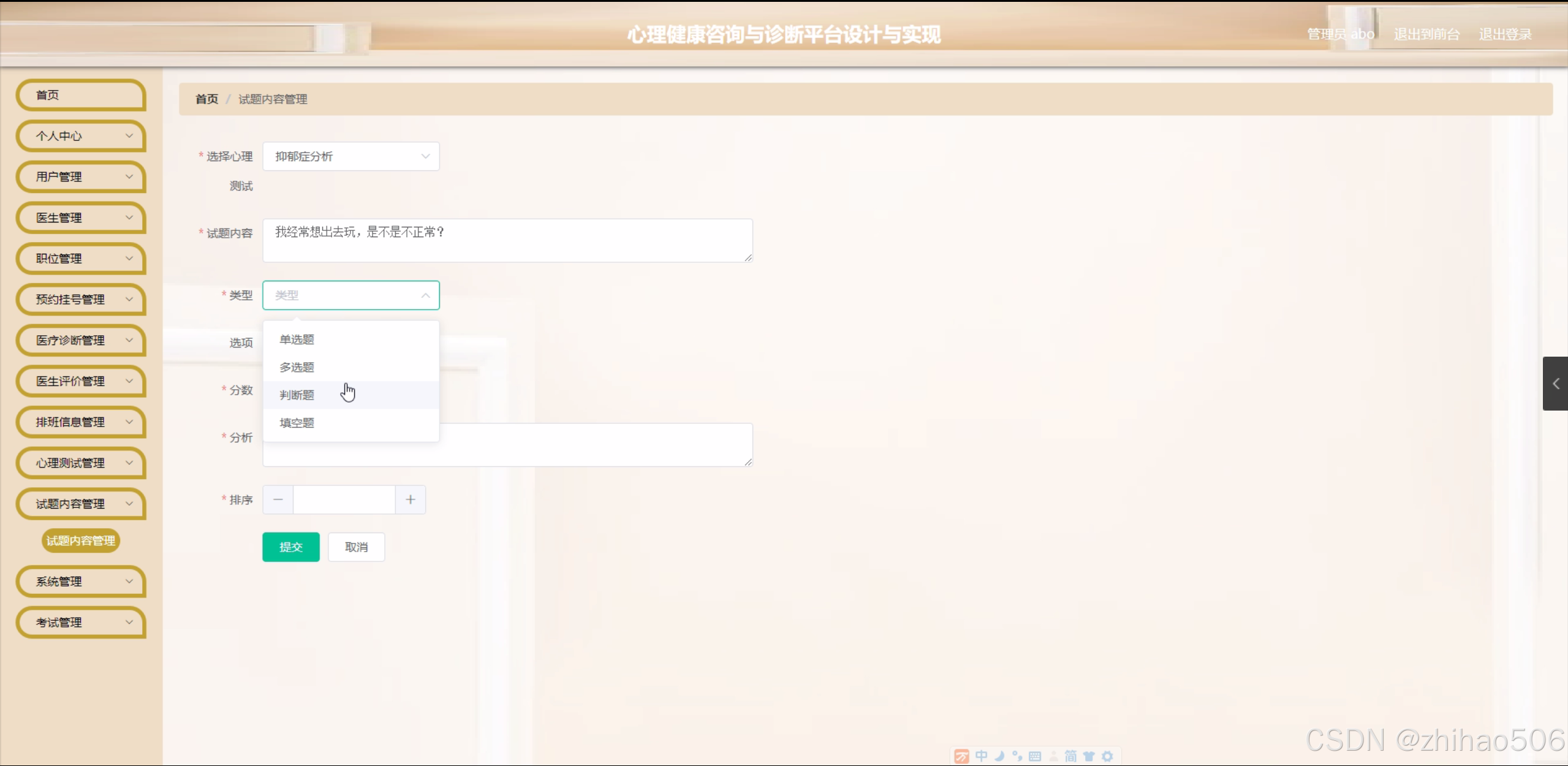 本选题针对当前心理咨询服务存在的供需不平衡、效率低下等问题,具有重要的理论意义和现实实践意义。理论意义在于,通过深入研究心理咨询系统的构建与优化,可以丰富和完善心理健康服务领域的理论体系,推动心理咨询服务的数字化、智能化发展。现实意义则在于,通过优化心理咨询流程,提高服务质量和效率,有助于缓解当前心理咨询资源紧张的状况,满足更多人的心理健康需求,同时提升医生的工作效率,实现双赢。