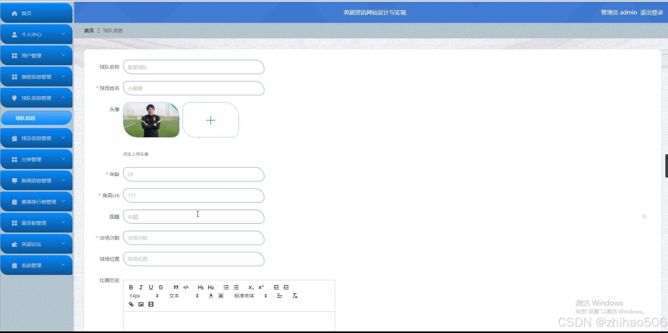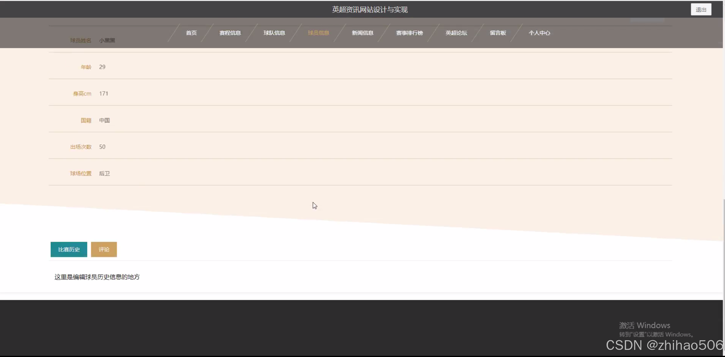 - 球队信息查询功能的设计与实现,提供各球队的基本信息、历史战绩、球员阵容等详细资料;