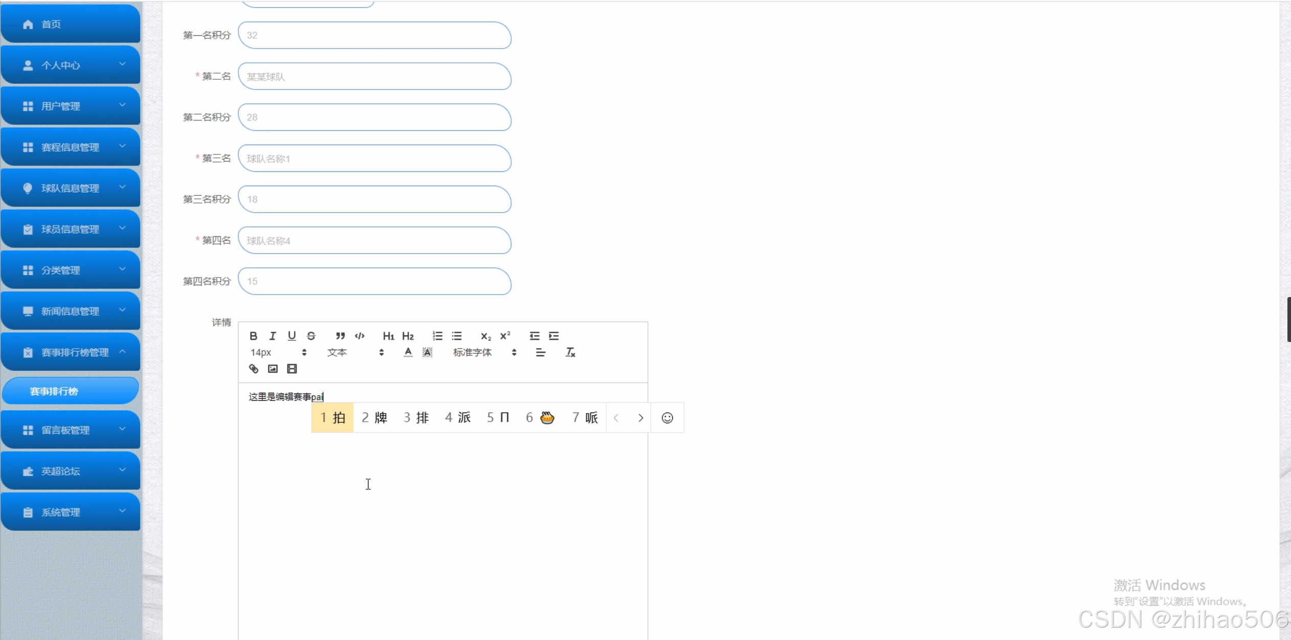 - 积分排行榜和射手排行榜功能的设计与实现,实时更新各球队和球员的积分和排名信息,提供最新的比赛结果和排名情况。