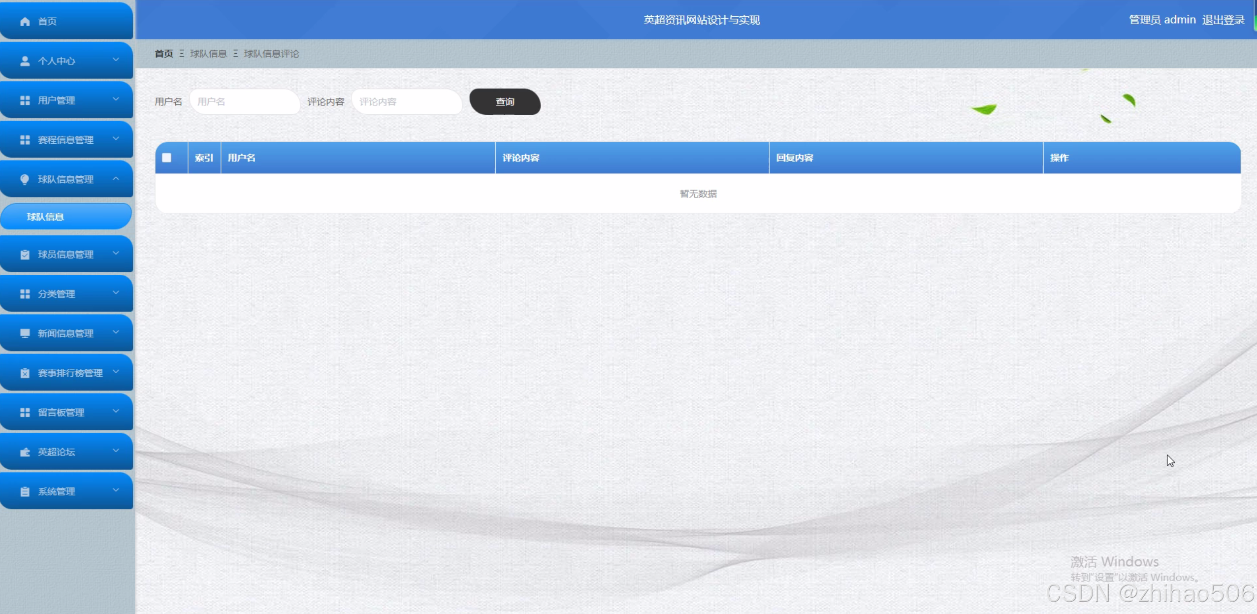 - 赛程信息查询功能的设计与实现,提供最新的英超联赛赛程信息,支持按日期、球队等条件进行筛选和查询;