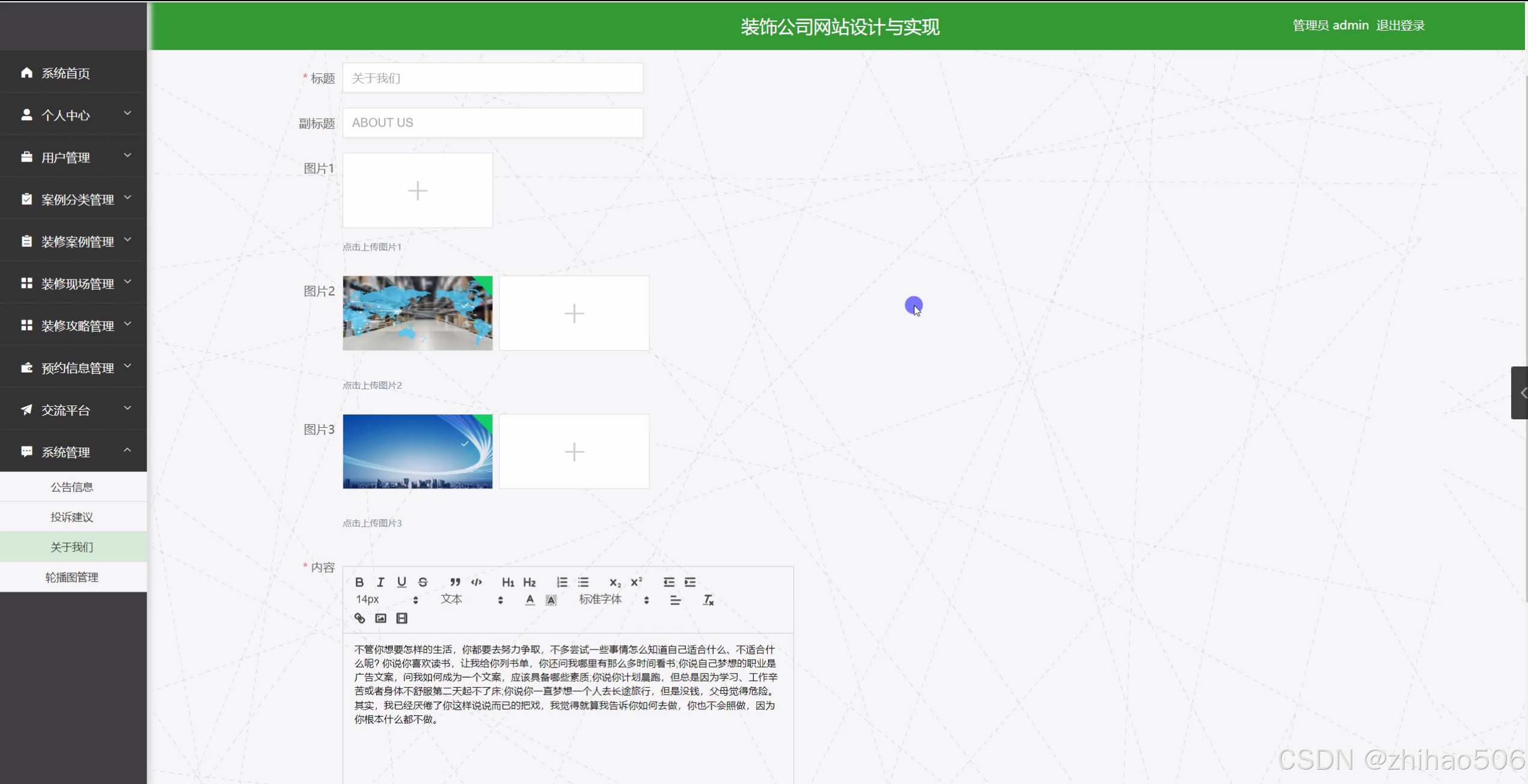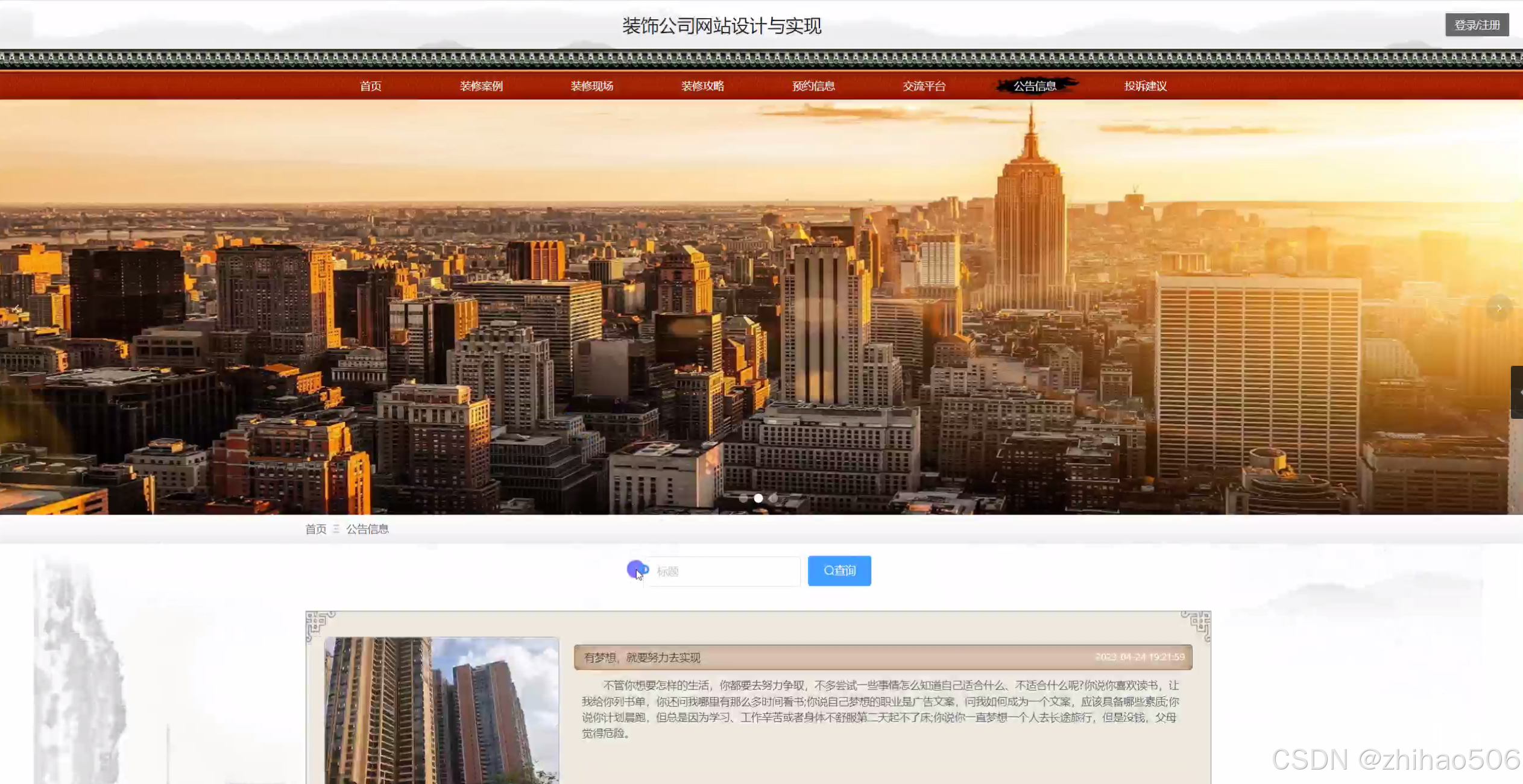 随着互联网的迅速发展,装饰行业也逐渐向数字化转型,装饰公司网站成为展示公司形象、吸引潜在客户、提供在线服务的重要平台。关于装饰公司网站的研究,现有文献主要集中在网站用户体验优化、营销策略分析以及技术应用等方面,而专门针对装饰公司网站设计与实现,特别是结合具体业务功能(如案例分类、装修现场直播等)的研究较少。因此,本选题将以装饰公司网站的设计与实现为研究情景,重点分析和研究如何通过系统功能优化提升用户体验,增强用户互动性和参与度,以期探寻装饰公司网站在数字化转型中的关键问题及其解决方案,为后续更加深入的研究提供基础。