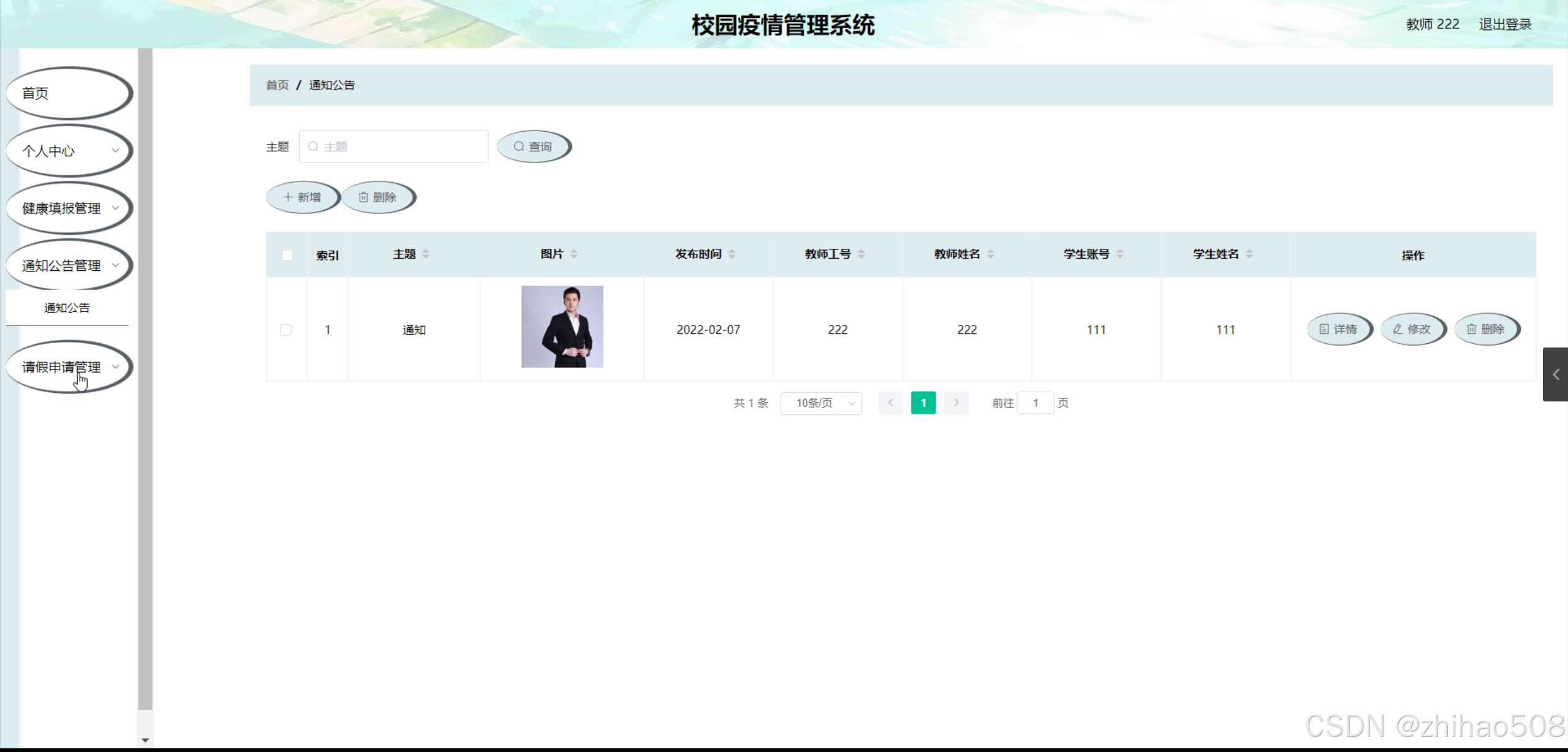 - 系统应用与评估:将系统应用于实际校园疫情管理中,收集师生反馈,评估系统的实用性和效果。