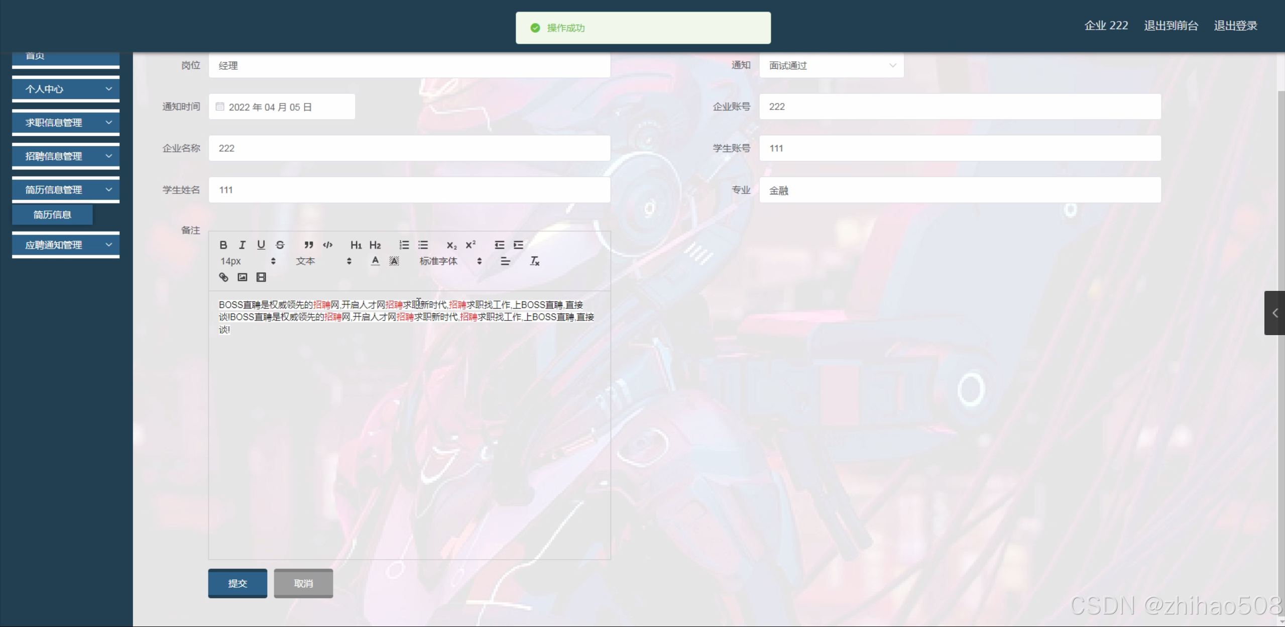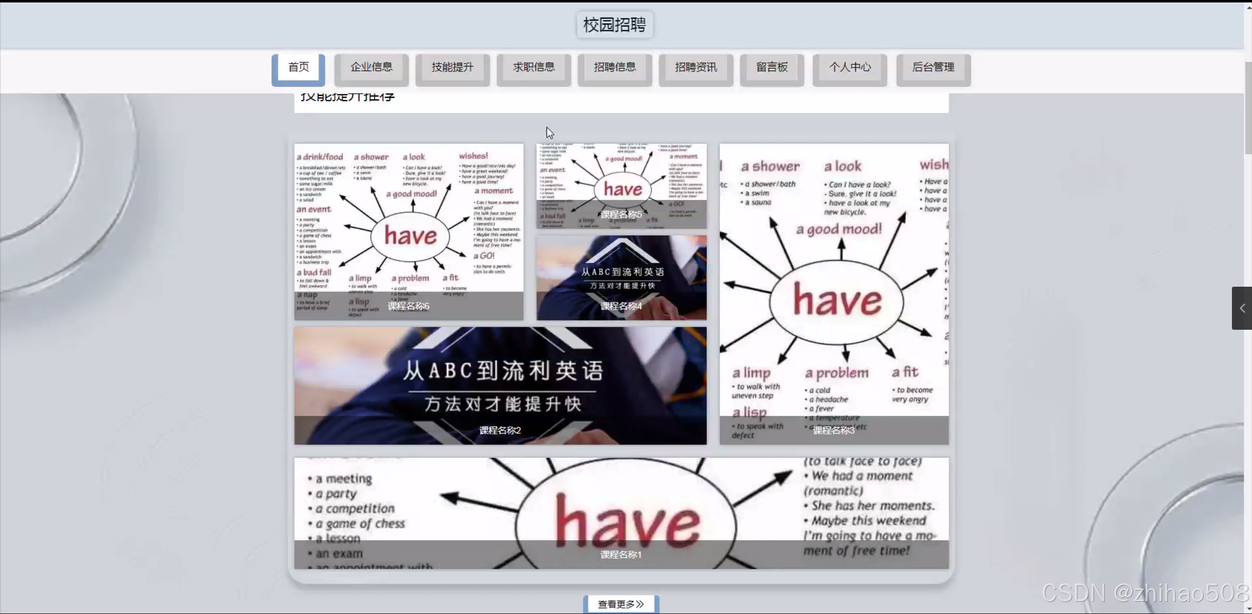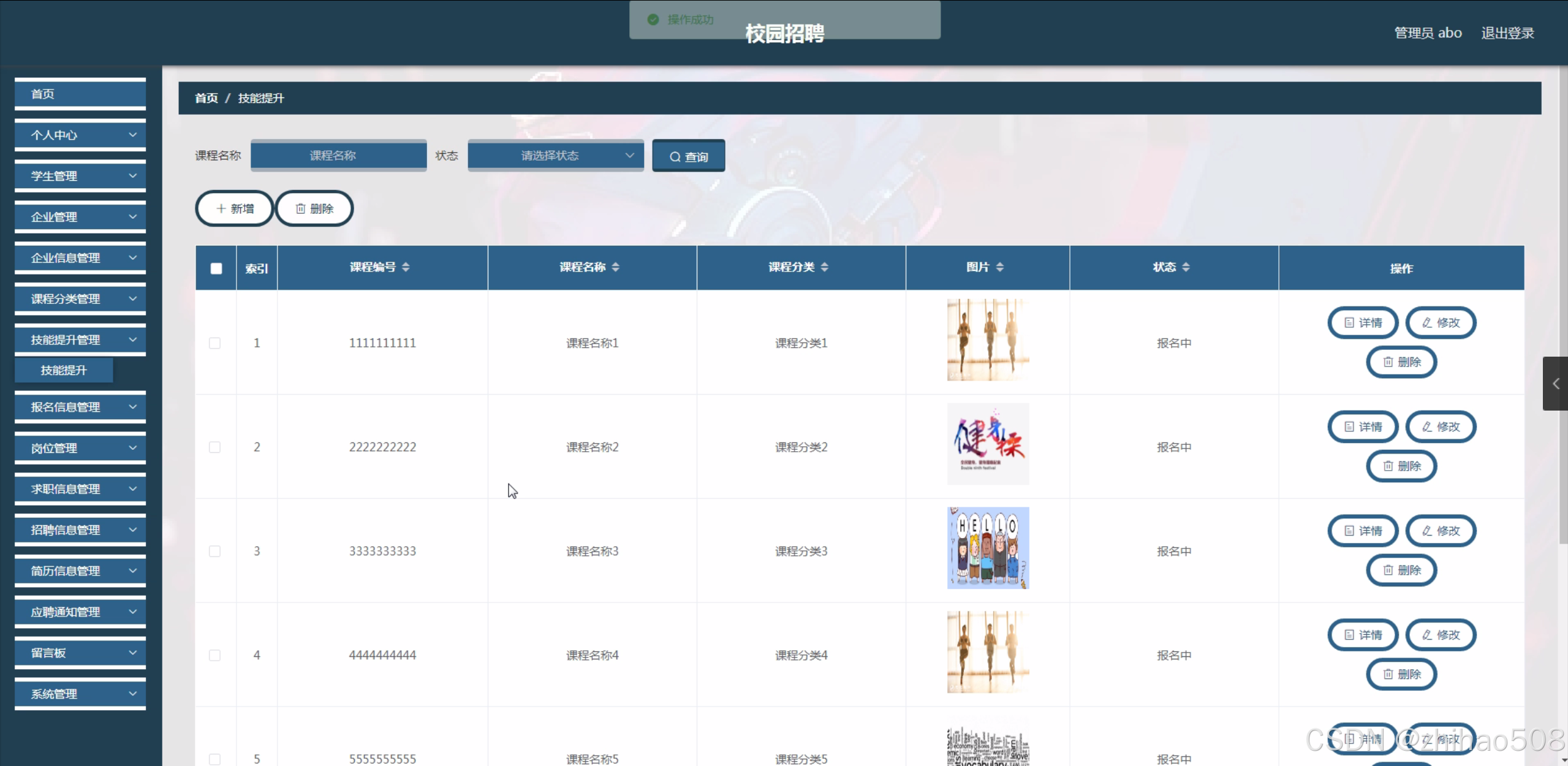 本研究将围绕校园招聘系统的核心功能展开,具体包括:学生信息管理、企业信息管理、课程分类与技能提升模块、报名信息管理、岗位发布与求职信息管理、简历信息管理、应聘通知管理等。通过对这些功能的详细分析,探讨其功能设计的合理性、易用性及对学生、企业双方体验的影响,进而提出优化建议。