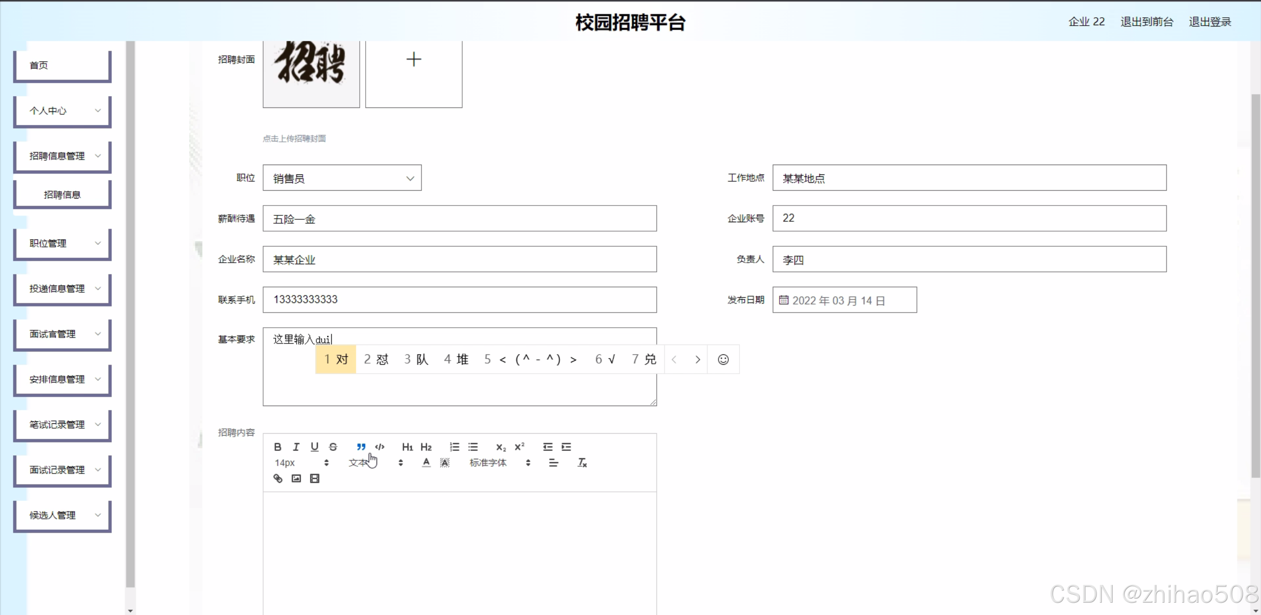 随着高等教育的普及和就业市场的竞争加剧,校园招聘已成为企业和毕业生双向选择的重要平台。然而,现有校园招聘平台大多存在信息不对称、匹配效率低下、用户体验不佳等问题。关于校园招聘平台的研究,现有文献主要集中在平台设计、用户体验优化及招聘效率提升等方面,但专门针对校园招聘平台系统性功能优化和智能化匹配技术的研究较少。因此,本选题将以当前校园招聘平台的实际应用为研究情景,重点分析和研究如何通过智能化匹配算法和系统功能优化,提升招聘匹配效率,改善用户体验,以期探寻校园招聘平台存在问题的根本原因,并提出对策建议,为后续更加深入的研究提供基础。