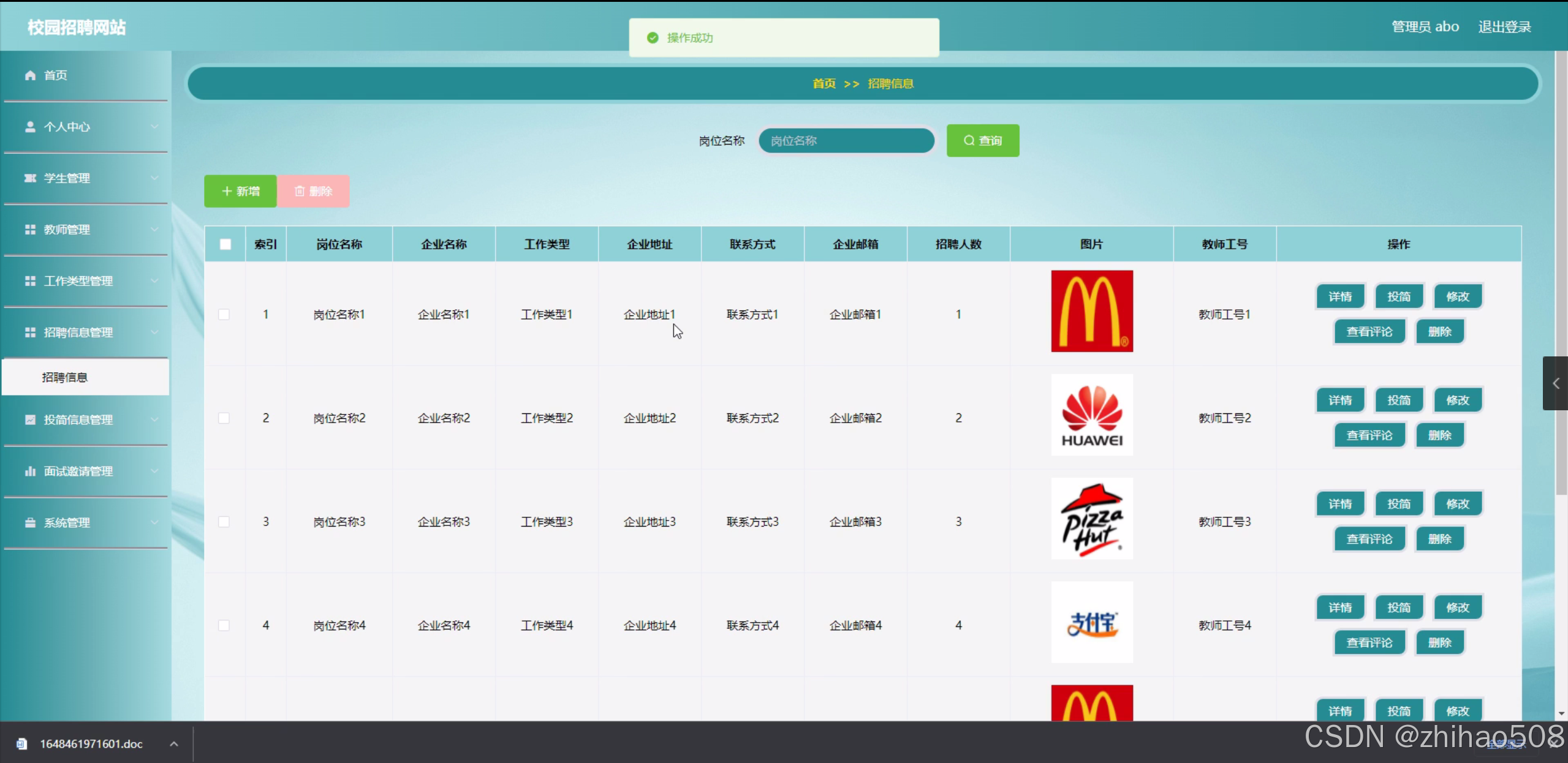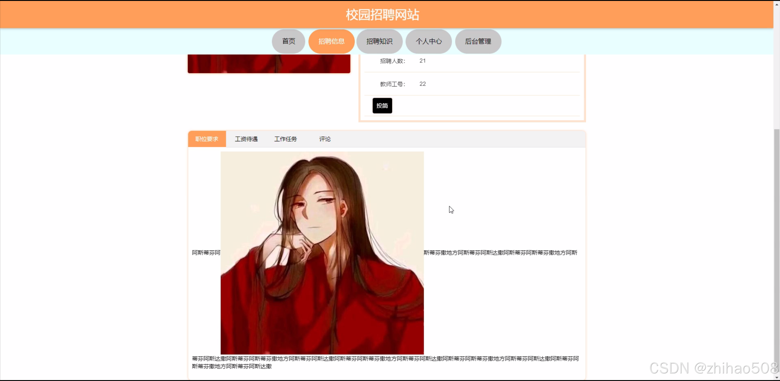 本研究将围绕校园招聘网站的核心功能展开,具体研究内容包括:学生用户的信息管理、简历投递及面试安排;教师用户的招聘信息发布、简历筛选及面试邀请;工作类型的分类管理;招聘信息的智能化匹配与精准推送;投简信息的状态跟踪与反馈;面试邀请的发送与确认等。通过深入研究这些功能模块的设计与优化,旨在构建一个高效、便捷、用户友好的校园招聘网站,为高校与企业搭建一个更加紧密的联系平台。