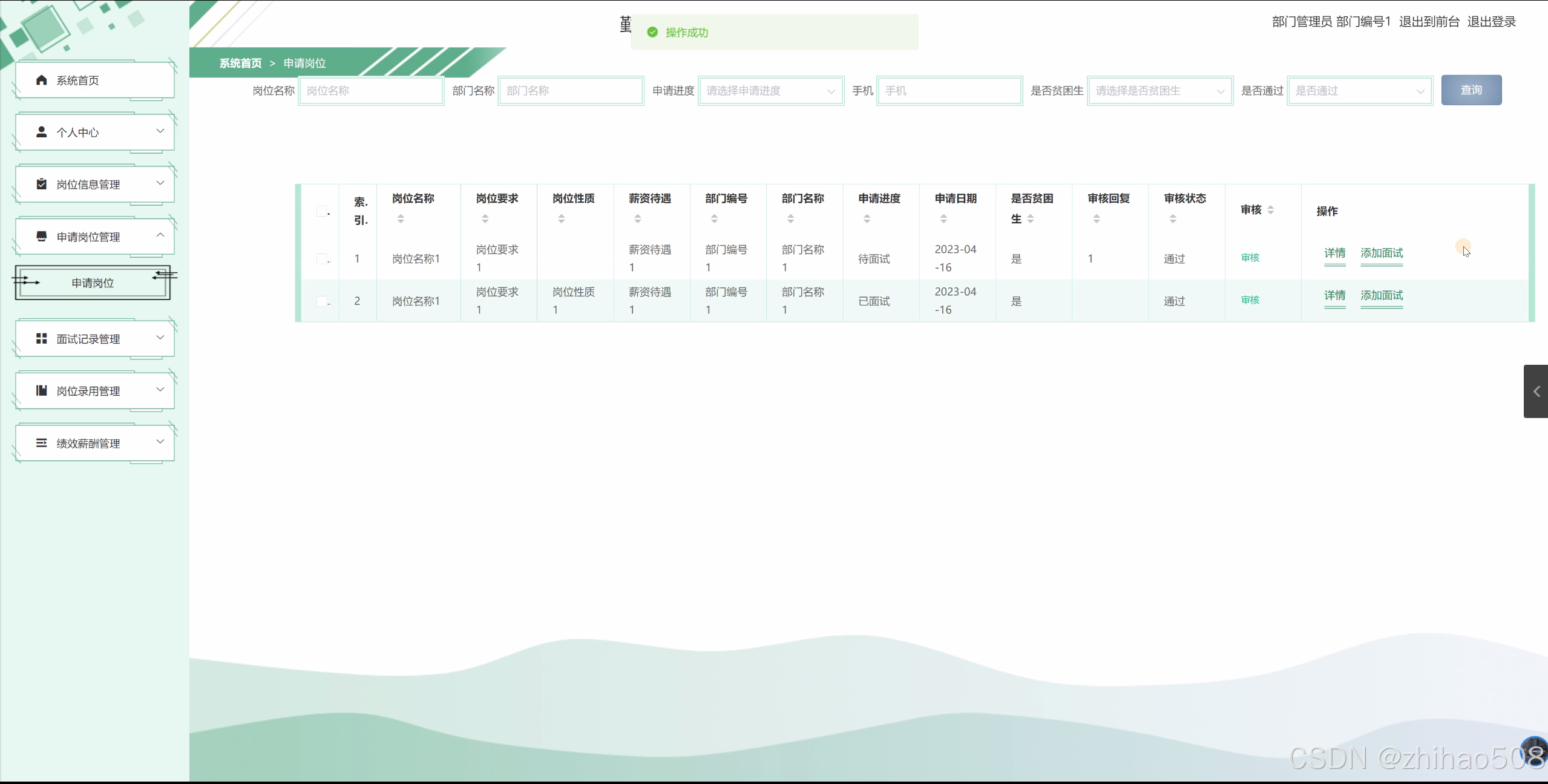 - 功能模块划分:将系统划分为部门管理员模块、院系模块、学生模块、专业模块、岗位信息管理模块、申请岗位模块、岗位录用模块、面试记录模块、绩效薪酬管理模块、岗位分类模块和活动分析模块等多个功能模块,并分别进行详细设计和实现。