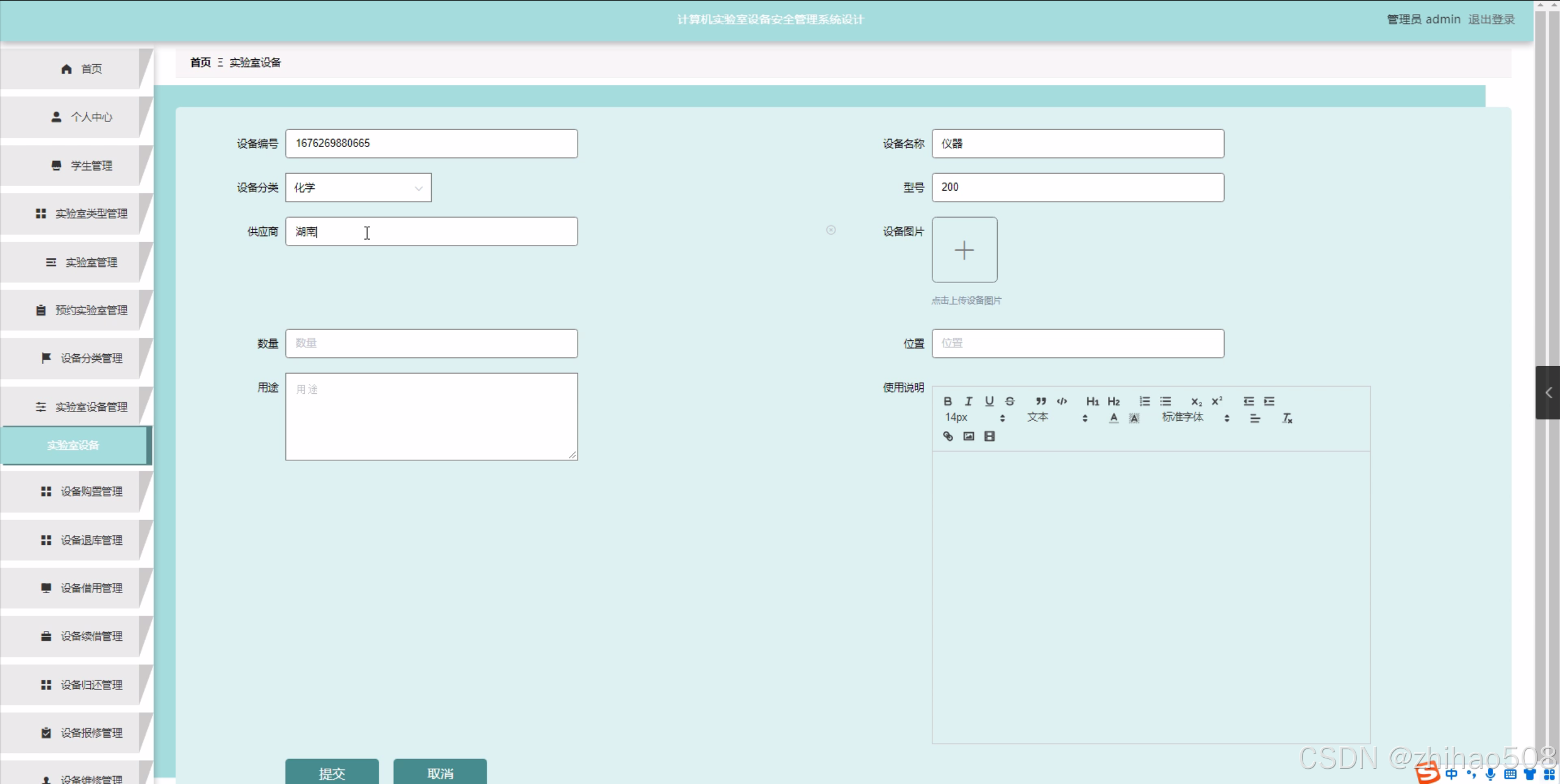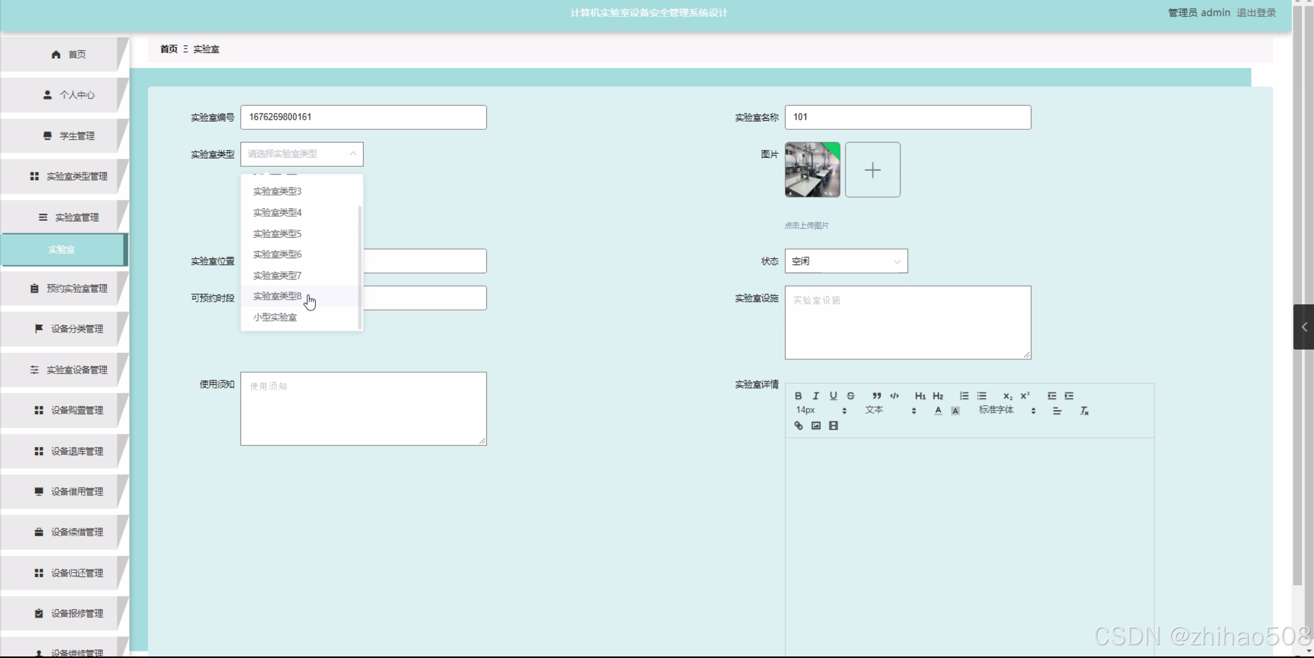 - 功能模块划分与实现:详细划分系统功能模块,并分别进行设计和实现。包括学生信息管理、实验室类型管理、实验室信息管理、预约实验室管理、设备分类管理、实验室设备管理、设备购置与退库管理、设备借用与归还管理、设备报修与维修管理等。