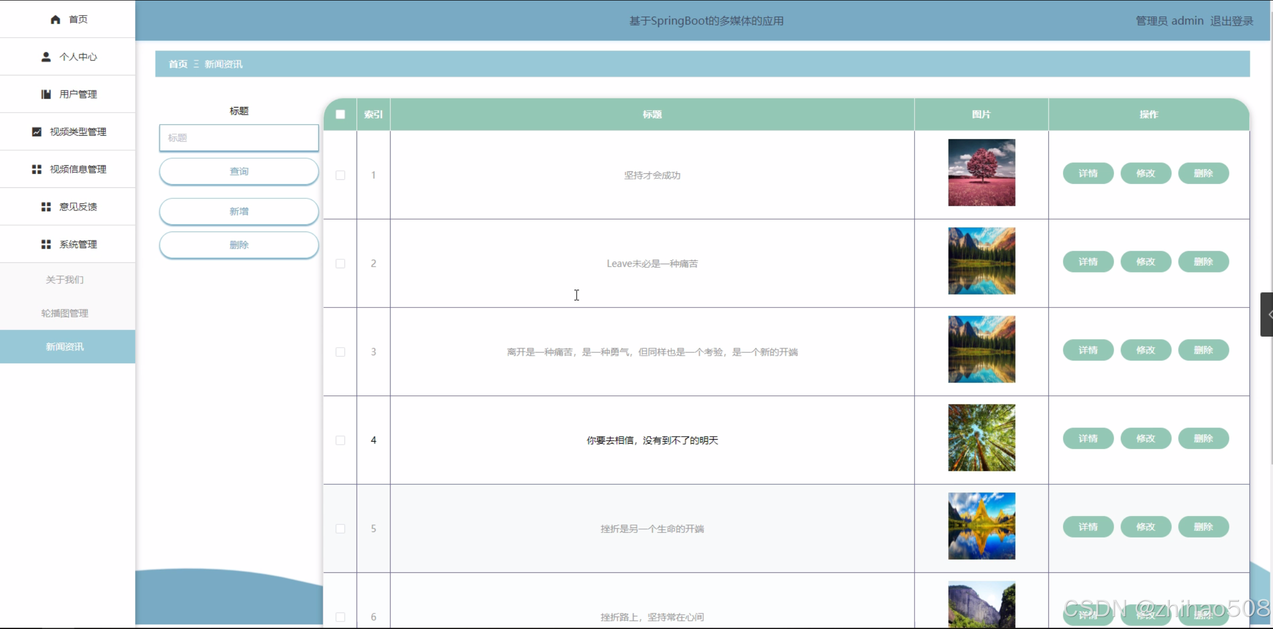随着信息技术的飞速发展,多媒体应用已成为现代生活不可或缺的一部分,广泛应用于教育、娱乐、广告、信息传播等多个领域。关于多媒体应用的研究,现有文献主要集中在多媒体技术的基础理论、系统设计及单一功能实现上,如视频压缩技术、音频处理技术等。然而,专门针对多媒体应用中用户体验优化、内容管理与个性化推荐系统的研究相对较少。因此,本选题将以“多媒体的应用”为研究情景,重点分析和研究如何通过整合用户管理、视频信息管理以及视频类型分类等功能,提升多媒体系统的整体用户体验和内容分发效率,以期探寻多媒体应用中用户体验与内容管理优化的机制,并提出相应的对策建议,为后续更加深入的研究提供基础。