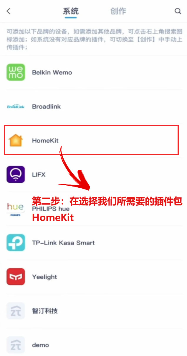 2. 在插件的系统中,我们选择Aqara的HomeKit插件进行设备连接;