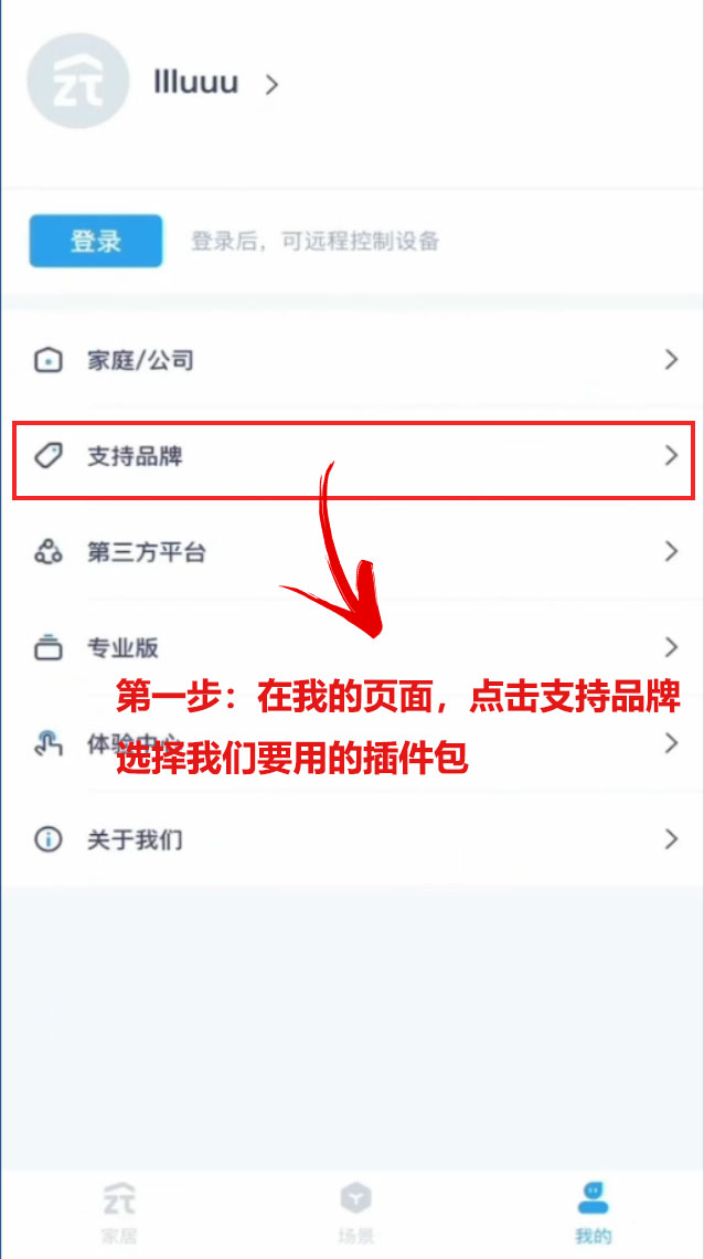 首先在我的页面中,点击支持品牌,选择我们所需要接入的插件;