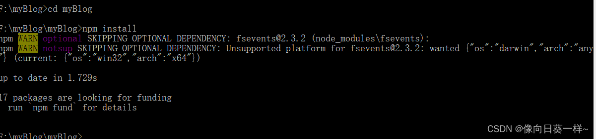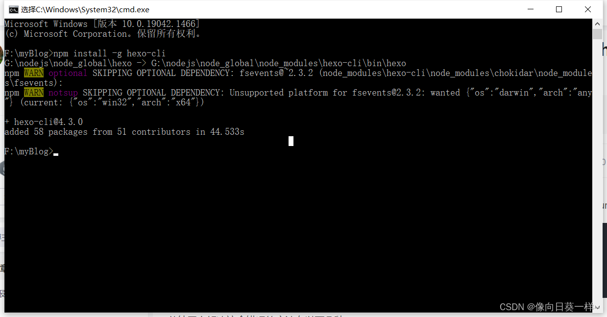 所有必备的应用程序安装完成后,即可使用 npm 安装 Hexo。