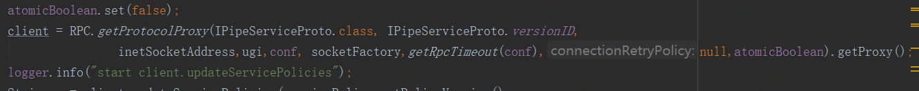 然后获取 RPC.server 的 实例,将相关的 hadoop的配置conf,protocol,instance,host,port,numHandlers 等参数配置,conf 以外的其他参数引用不需要 kerberos 相关的引入。