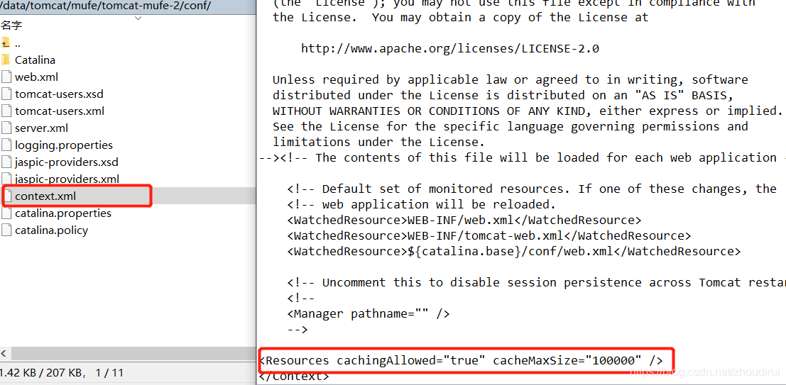 1.将tomcat /conf 下的context.xml 增加缓存配置