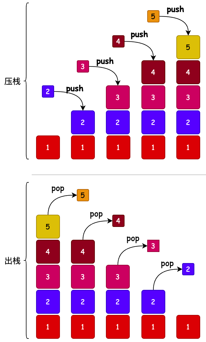 堆栈是一种 LIFO(后进先出)的线性的数据结构,或者更抽象说是一种顺序集合,push 和 pop 操作只发生在结构的一端,称为栈顶。这种结构可以很容易地从堆栈顶部取出一个项目,而要到达堆栈更深处的一个项目可能需要先取出多个其他项目。例如;我们经常看到的浏览器访问记录,总是把最近记录展示给你。还包括:一摞书、一叠盘子、一脑瓜子生活琐事。