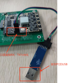 3、板子UART (TTL电平)与PC机的USB转UART连接,如下图所示: