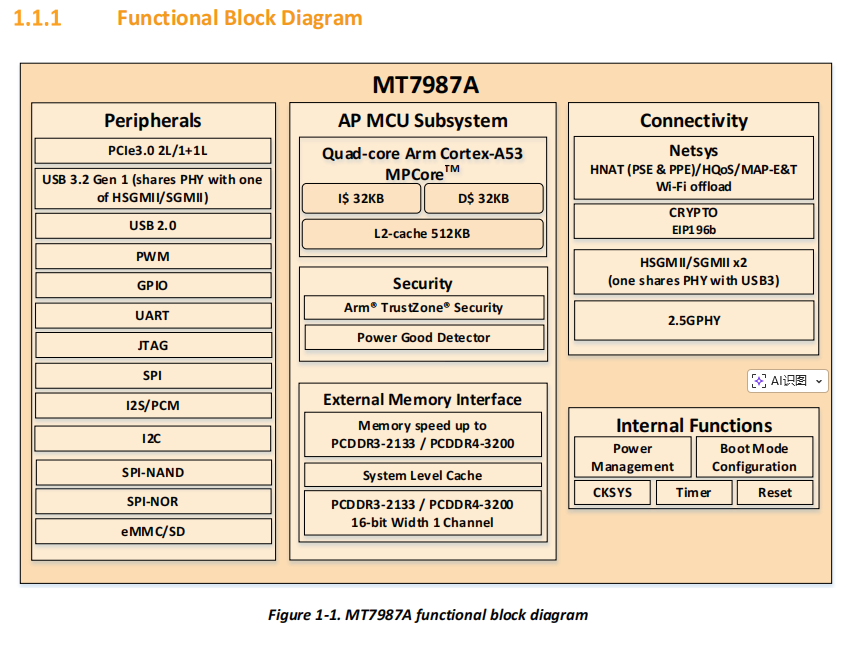 MT7987A:Quad-Core CA53@2.0GHz, 64-bit, 18.4K DMIPS