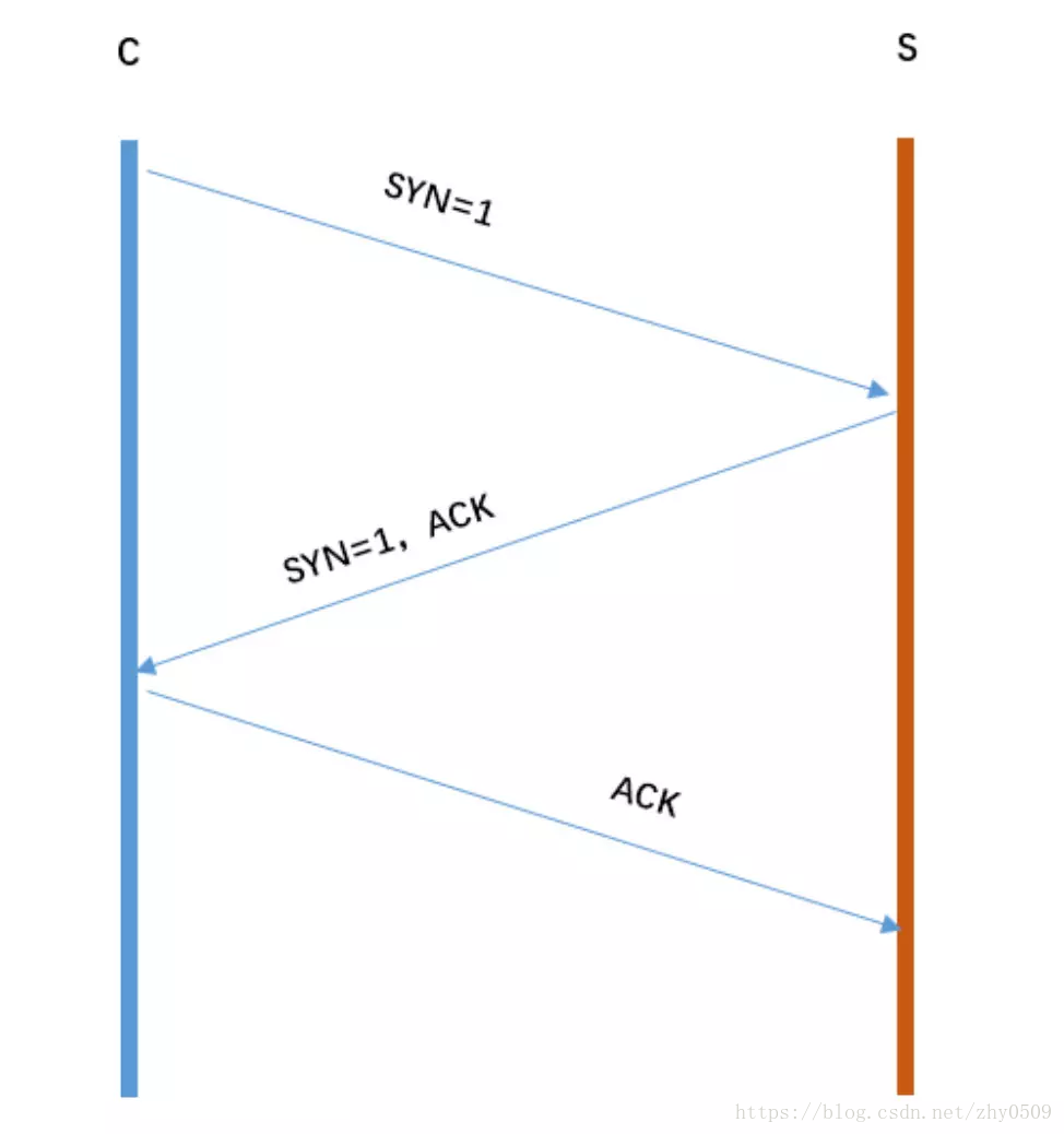 第一次握手:建立连接时,客户端发送SYN包(SYN=j)到服务器,并进入SYN_SENT状态等待服务器确认;SYN:同步序列编号