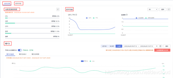 - 实时分析:该特性集实时诊断、实时会话、慢SQL 3大模块内容为一体。可直观展示当前实例资源使用率、实时性能信息、当前实例会话情况,以及相应时间段内慢日志趋势、慢日志统计、慢日志明细数据信息,通过查看这些性能指标,帮助企业DBA和运维人员在线定位异常,并进行优化。