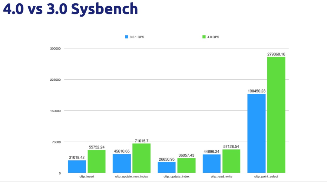 除此之外,在 4.0 版本上真正实现了 HTAP 功能。简单来说,用户可以在一套数据库上同时运行截然不同的计算负载,即联机交易的计算负载和海量数据的实时分析。此前,在数据库领域,这两种计算还不能完全放在一起,因为它们对资源的消耗、对计算本身的性能要求,以及对数据的处理方式是完全矛盾的。
