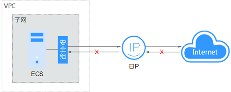 绑定了EIP的ECS仅允许访问公网,但不允许被公网用户访问,通过安全组实现。