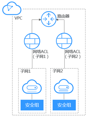 网络ACL是对子网的访问控制策略系统,根据与子网关联的入站/出站规则,判断数据包是否被允许流入/流出关联子网。
