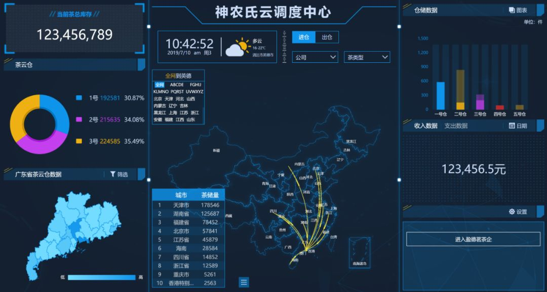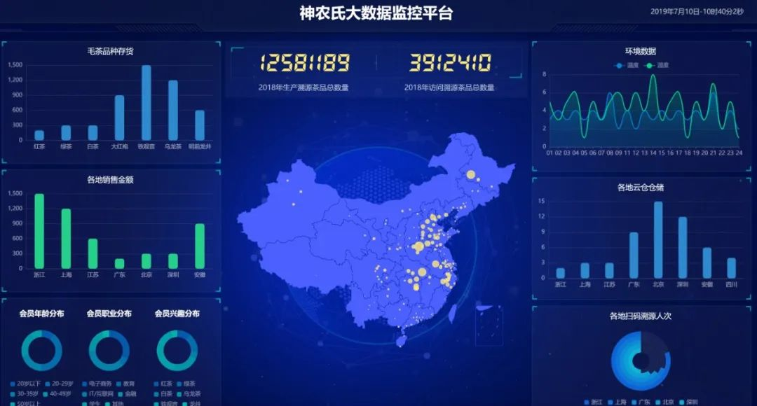 茶企或茶叶交易中心可通过神农氏大数据监控平台和神农氏云调度中心,可以轻松查看茶叶从生产、加工、检测到包装物流的全程防伪防窜货溯源信息,了解目前货源整体情况,做到茶叶物流走向、交易、货存实时监控。