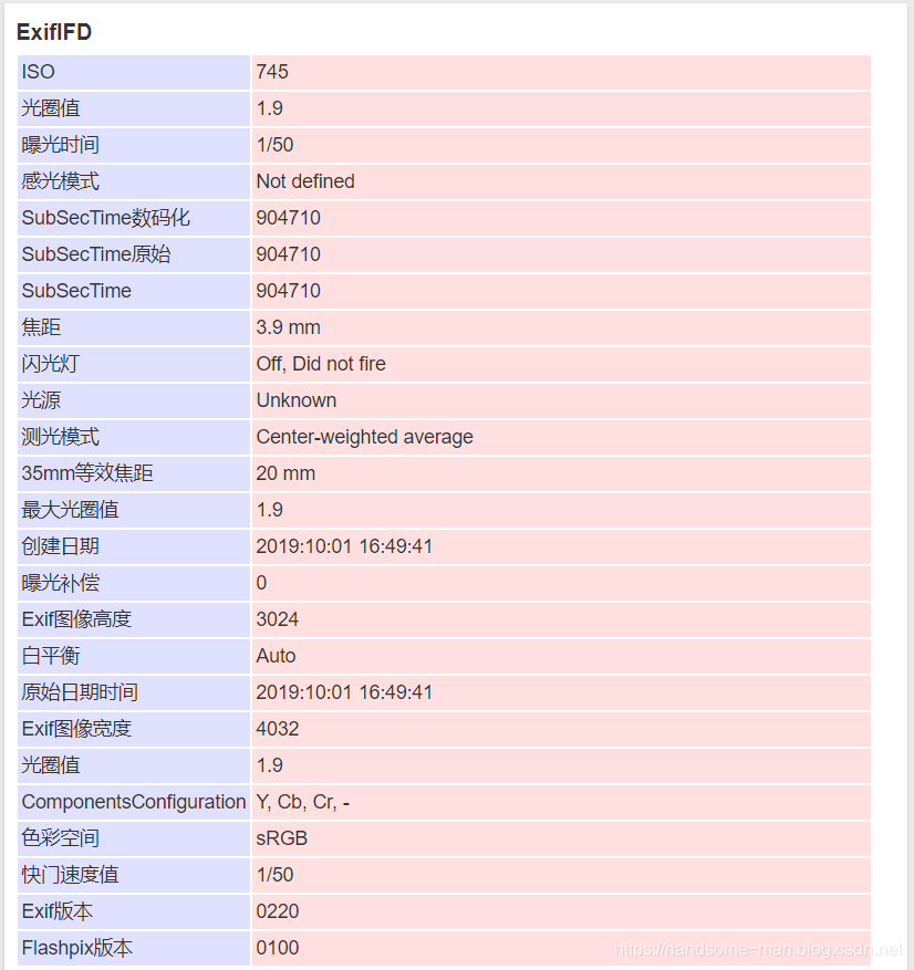 网上有很多的EXIF信息查看器,这里上传一张十月一日和朋友去观看的我和我的祖国这部电影的照片,没有任何的标志建筑背景,使用该工具进行尝试,可以很直观的看到拍照时间、手机型号、地理位置等信息,具体如下所示: