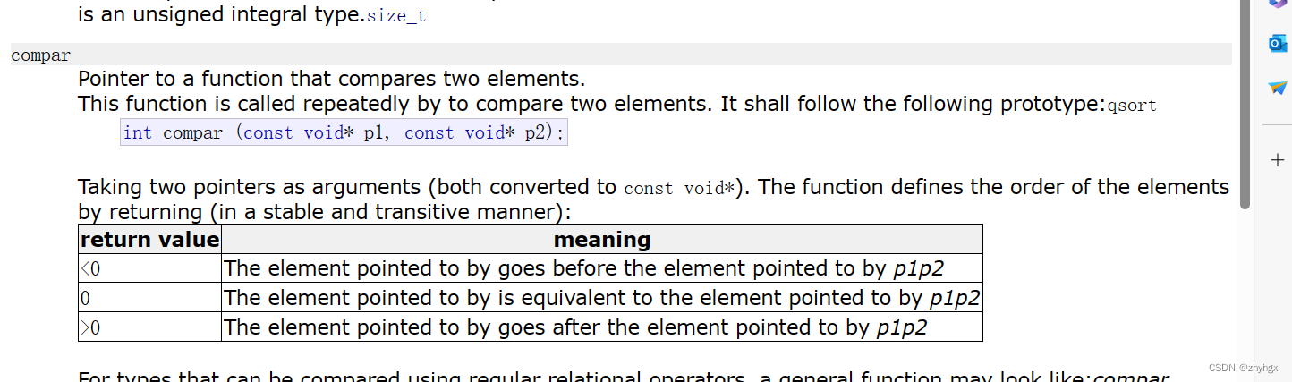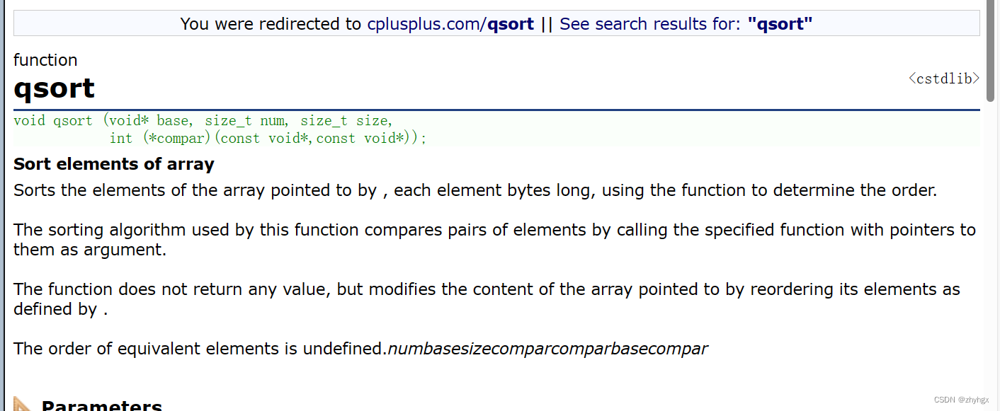 我们在cplusplus可以看到快速排序(qsort)所需的参数有4个,大家也可以去看看。qsort - C++ 参考 (cplusplus.com)