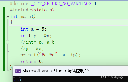 当然,我么们可以看下面代码,这里的int* p的*是说明这个指针。而在输出函数中,想要获取指针所指向地址的对象,那么就需要*解引来得到。