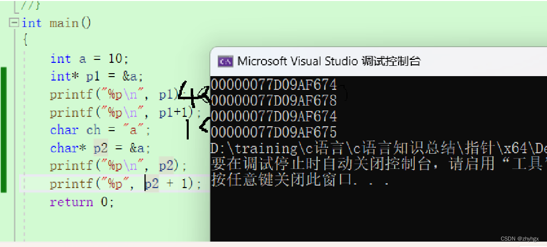 注意:指针变量的大小跟类型无关,任何指针的大小都是相同的。