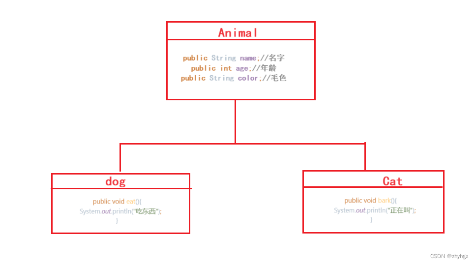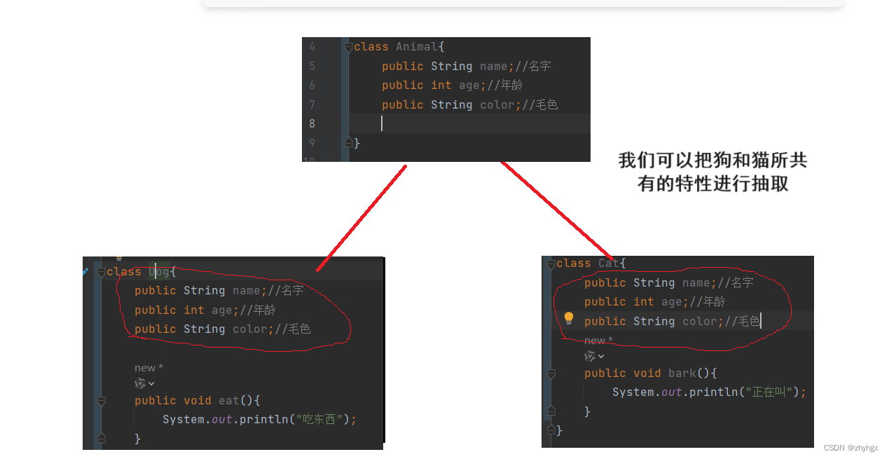 接上的狗和猫,我们可以利用继承的思想,把他们所共有的进行抽取