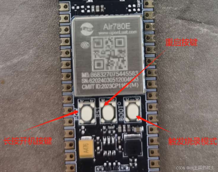 2、当我们模块开机时,按着BOOT键然后点按重启键即可。