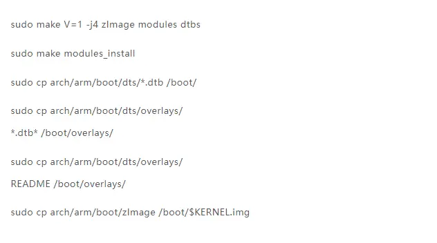 生成并安装内核、模组和设备树blob。此步骤可能需要很长时间,具体取决于所使用的树莓派模型。